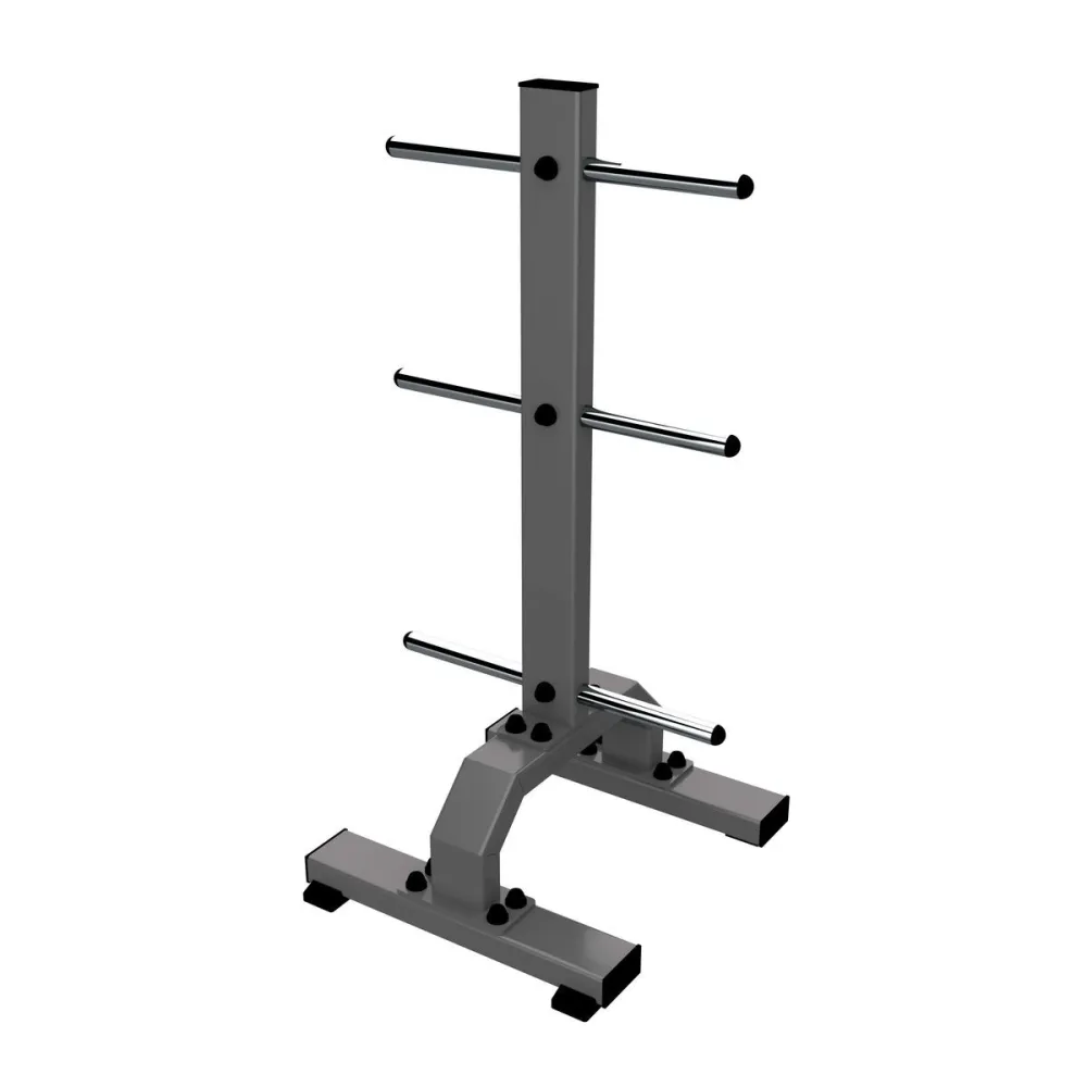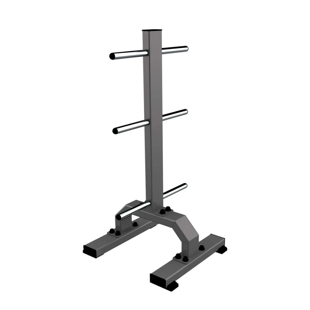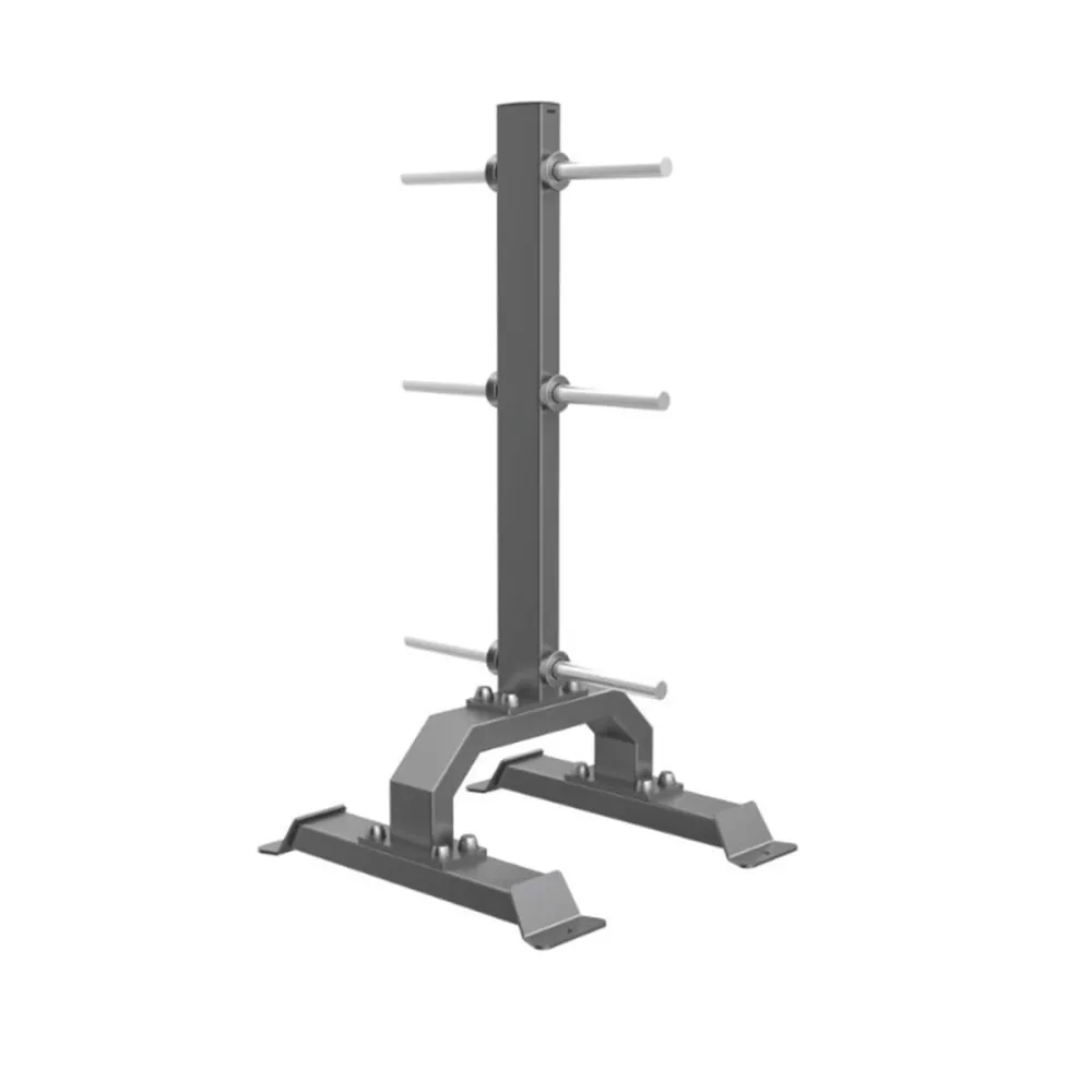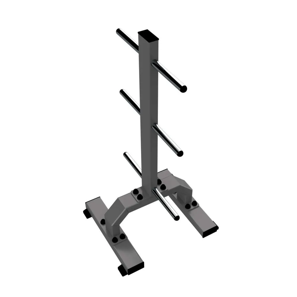 Стойка оснащена универсальными накопителями, позволяющими хранить диски с различным диаметром посадочных отверстий. Такая конструкция делает использование стойки удобным и функциональным для тренирующихся.