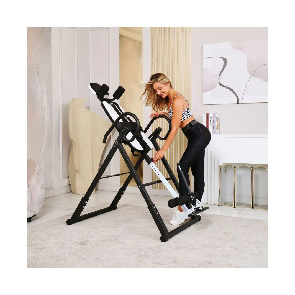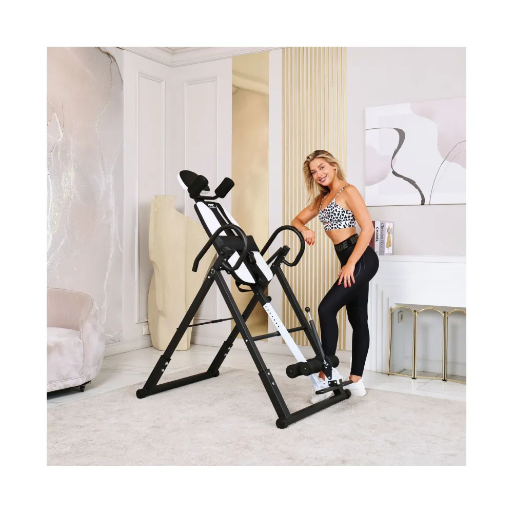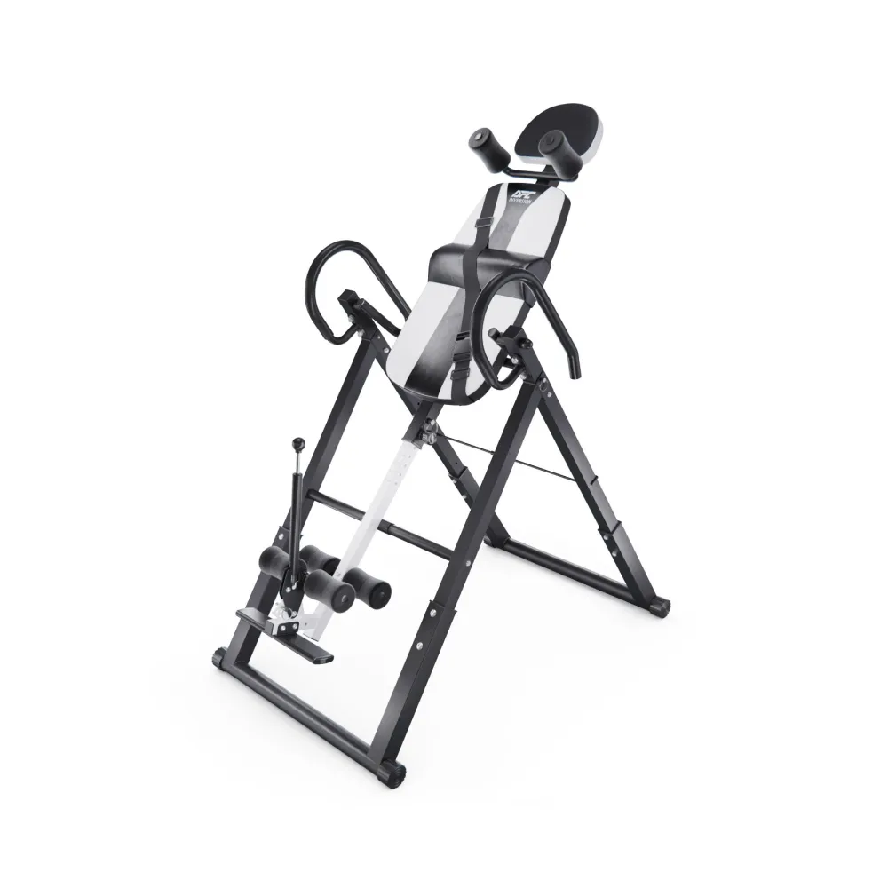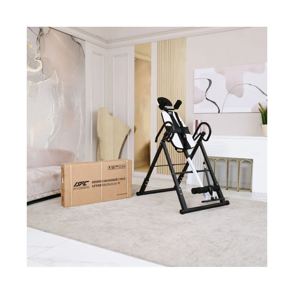 Инверсионный стол складной DFC STYLE белый — это практичный и эффективный тренажёр, который помогает улучшить осанку, укрепить связки и повысить кровообращение. Он оснащён удобной спинкой черного цвета и имеет валики для головы, которые обеспечивают дополнительное удобство. В комплекте также присутствует съёмная подушка для поясницы, что способствует повышению комфорта во время занятий.