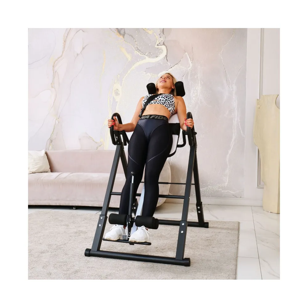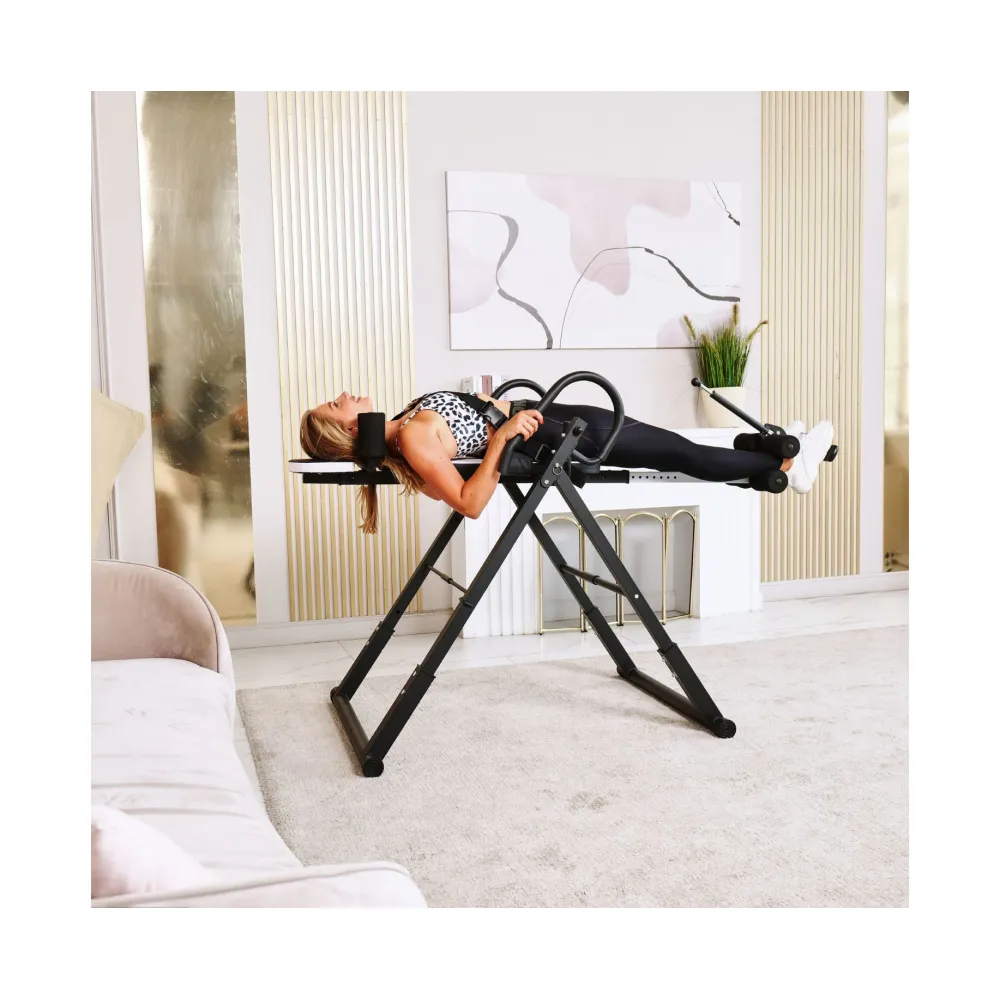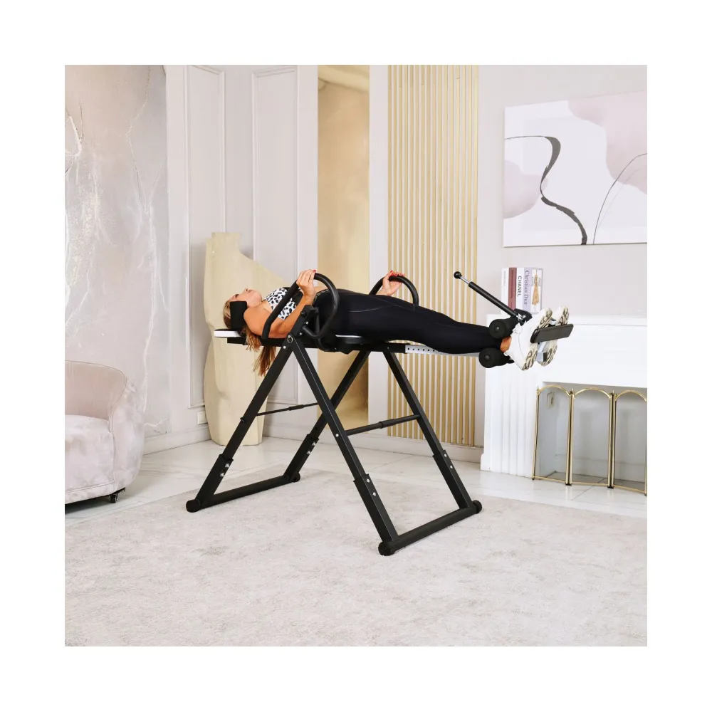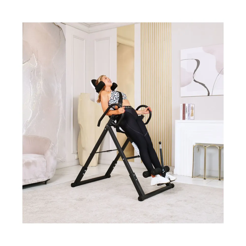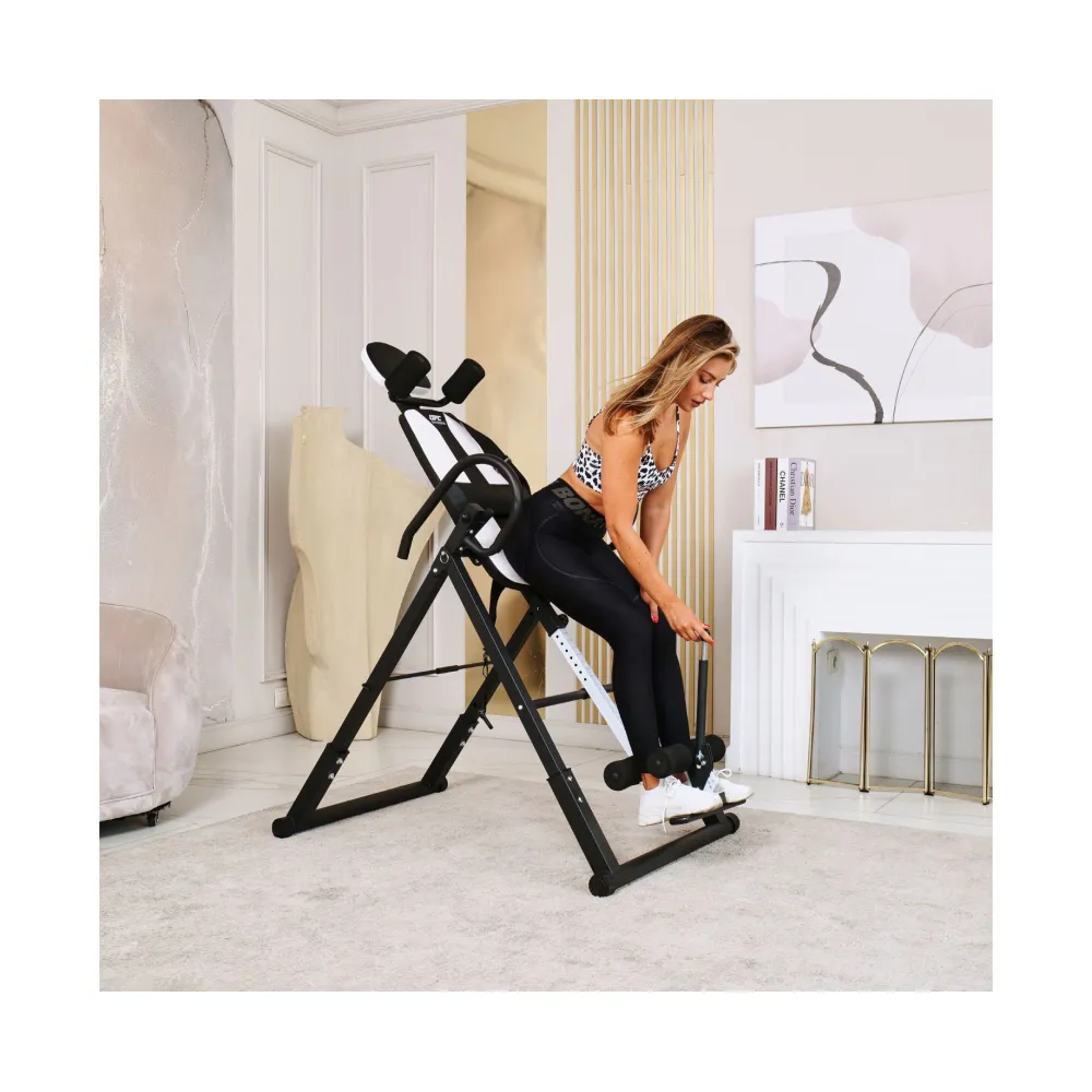 Инверсионный стол складной DFC STYLE белый — это практичный и эффективный тренажёр, который помогает улучшить осанку, укрепить связки и повысить кровообращение. Он оснащён удобной спинкой черного цвета и имеет валики для головы, которые обеспечивают дополнительное удобство. В комплекте также присутствует съёмная подушка для поясницы, что способствует повышению комфорта во время занятий.