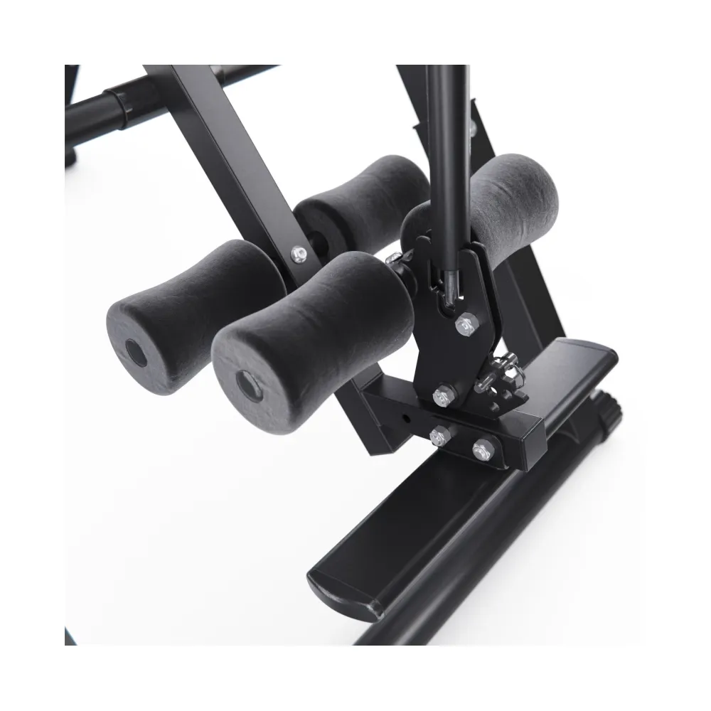 Максимальная нагрузка стола составляет 135 кг, что позволяет людям с разной комплекцией использовать его без ограничений. Уникальная конструкция стола включает ограничитель угла наклона в виде перекладины, что даёт возможность выбирать одно из трёх положений (20, 40 или 60 градусов). Также стол можно установить на 180 градусов, убрав перекладину. Для обеспечения безопасности во время тренировок предусмотрен страховочный ремень.
