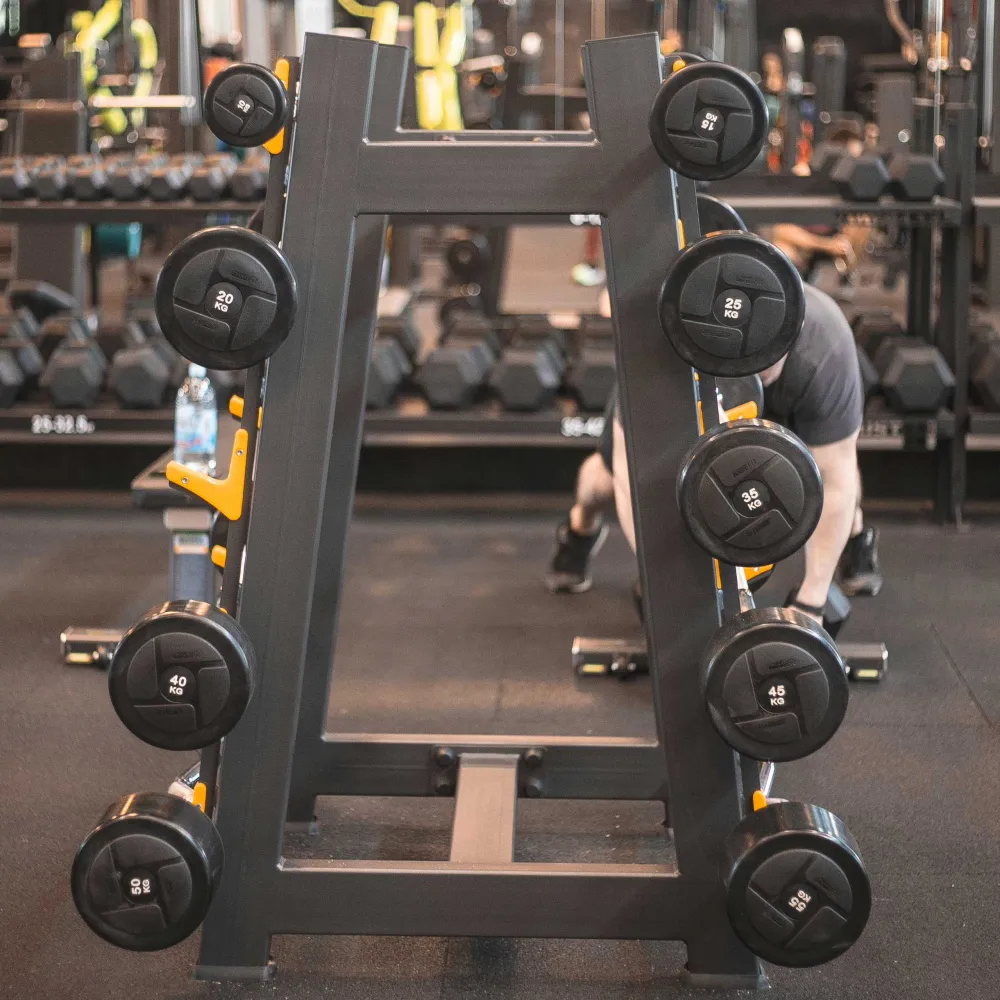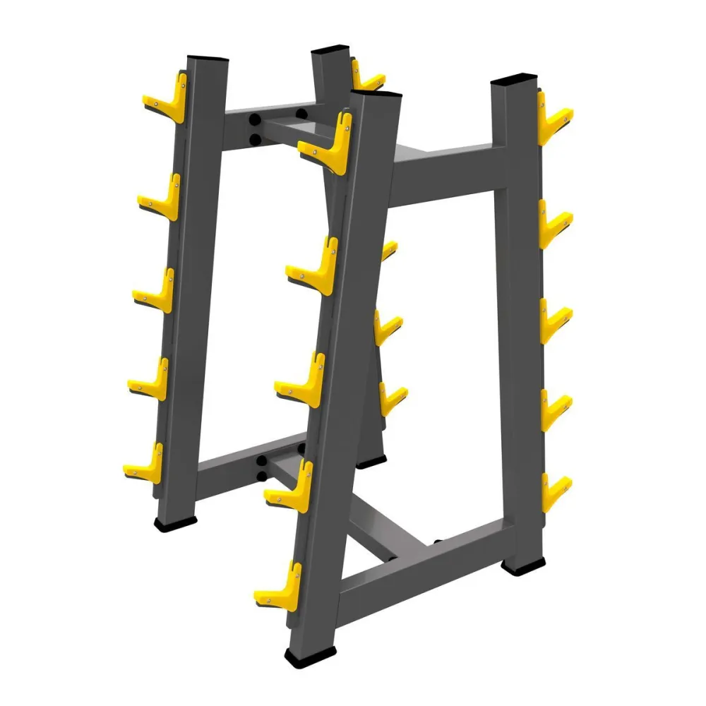 Стойка А-3055 способствует поддержанию порядка в зоне силовых тренировок, что немаловажно для комфорта пользователей. Она экономит пространство и обеспечивает безопасное хранение до 10 фиксированных штанг, позволяя легко организовать тренировки и заниматься с максимальным комфортом.