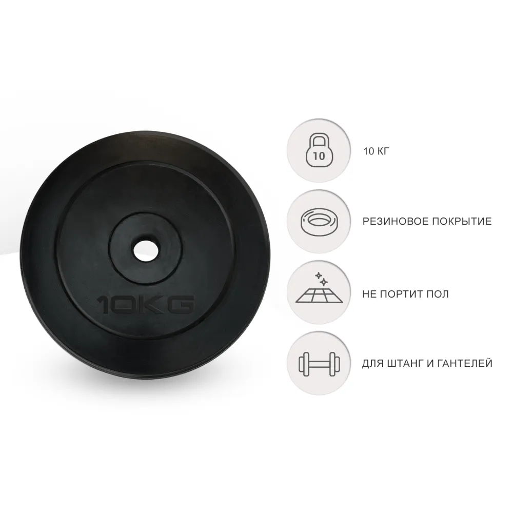Покрытие диска предотвращает образование ржавчины, что значительно увеличивает его срок службы. Кроме того, резиновое покрытие снижает уровень шума при использовании, не создавая резких звуков, которые могут отвлекать во время тренировки. Это особенно важно для занятий в домашних условиях или в спортивных залах.
