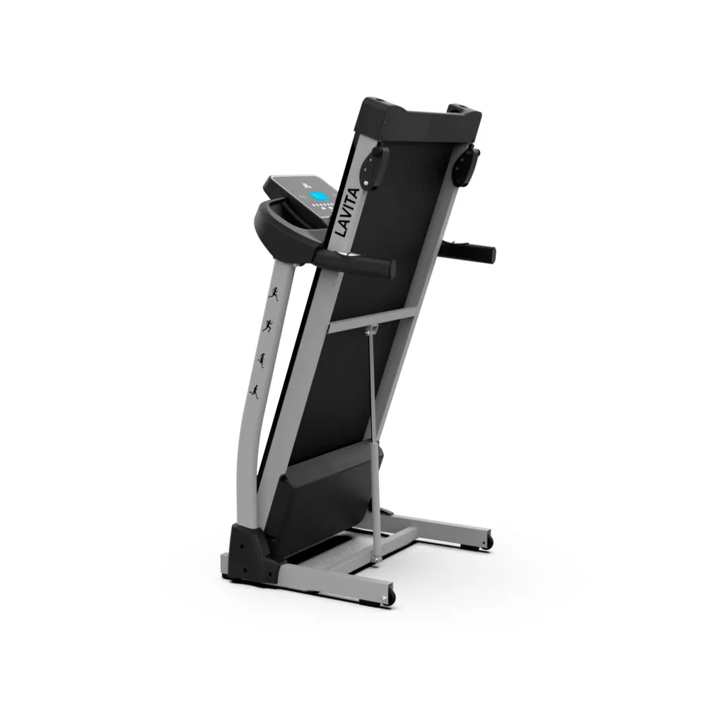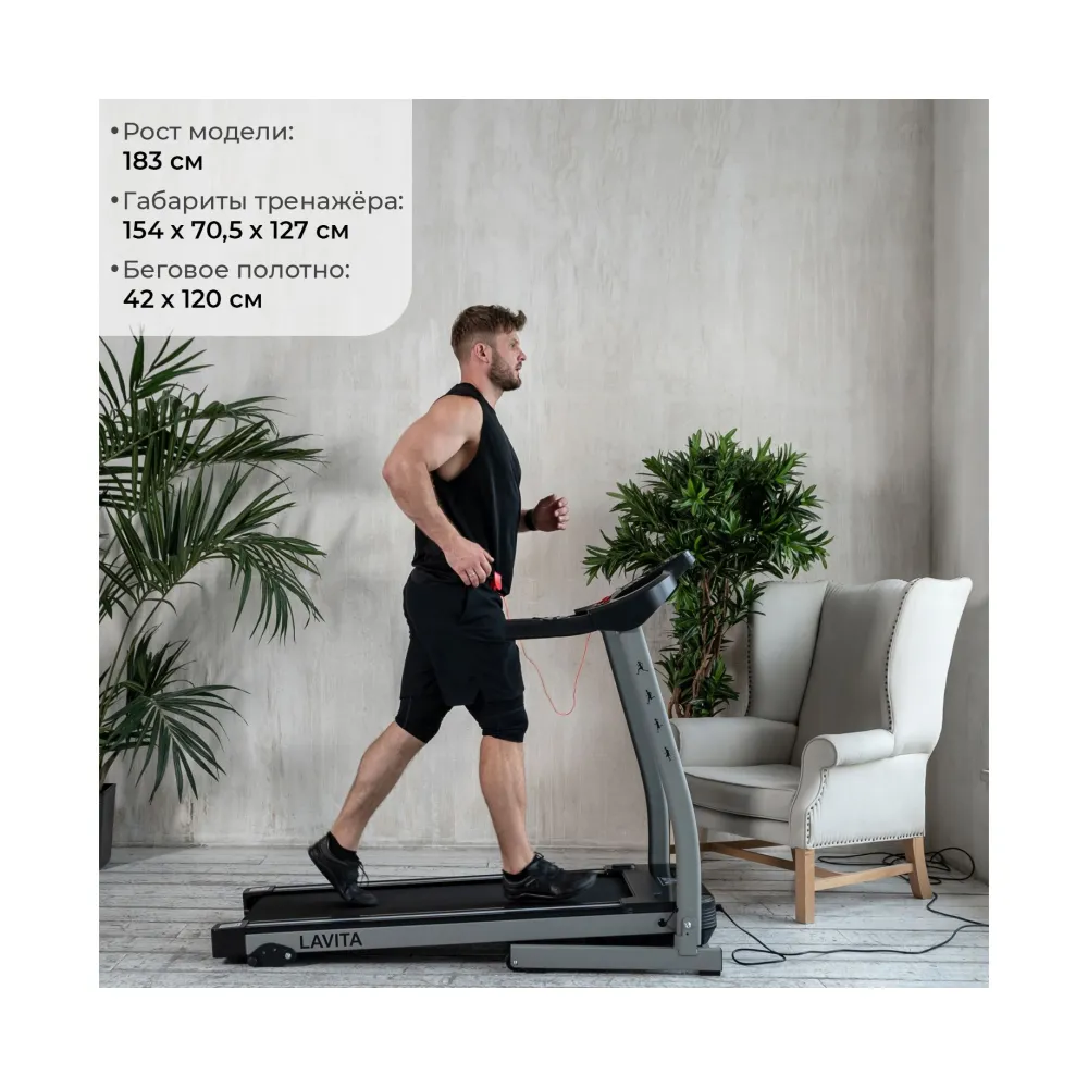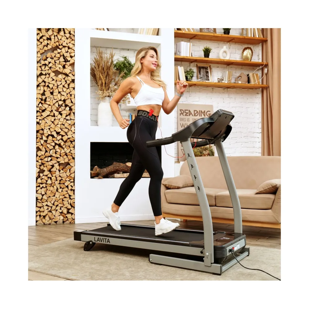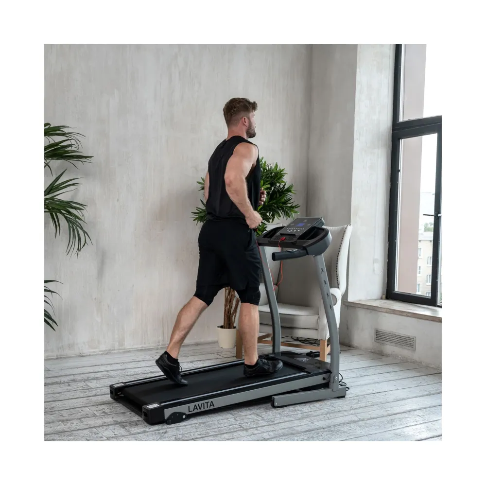 Электрическая беговая дорожка LAVITA для занятий дома. Тренажер начального уровня с мотором мощностью 1,75 л.с. Шаг изменения скорости беговой дорожки 0,1 км/ч.