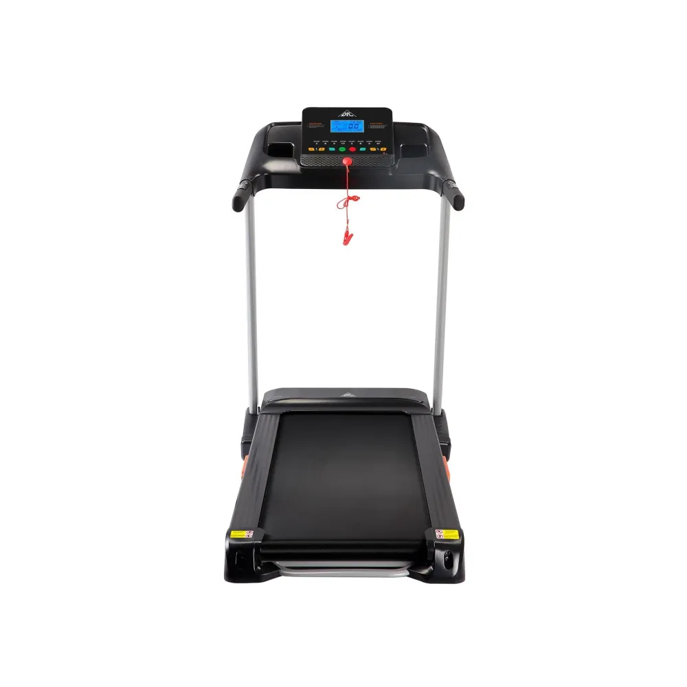В своем арсенале дорожка имеет двигатель постоянного тока мощностью 2 л.с. Шаг изменения скорости беговой дорожки 0,1 км/ч. Угол наклона бегового полотна изменяется с помощью дополнительного электромотора. Встроенные динамики звуковой системы и возможность подключения дополнительных устройств через разъем MP3 помогут провести тренировку под любимую мелодию. Два комплекта встроенных в поручни датчиков позволят следить за частотой сердечных сокращений. Такие датчики имеют определенную погрешность. Для точности показаний рекомендуем приобрести нагрудный пояс с монитором в форме часов DFC W117.