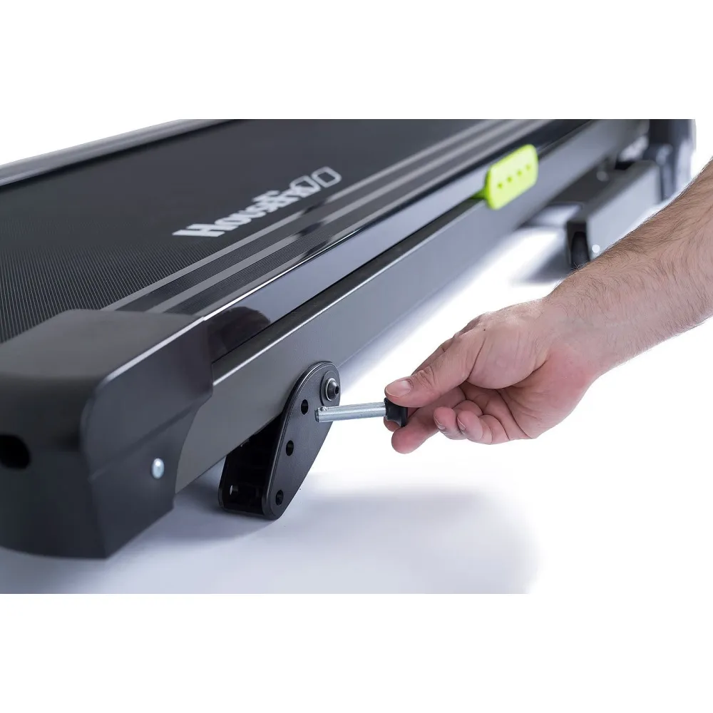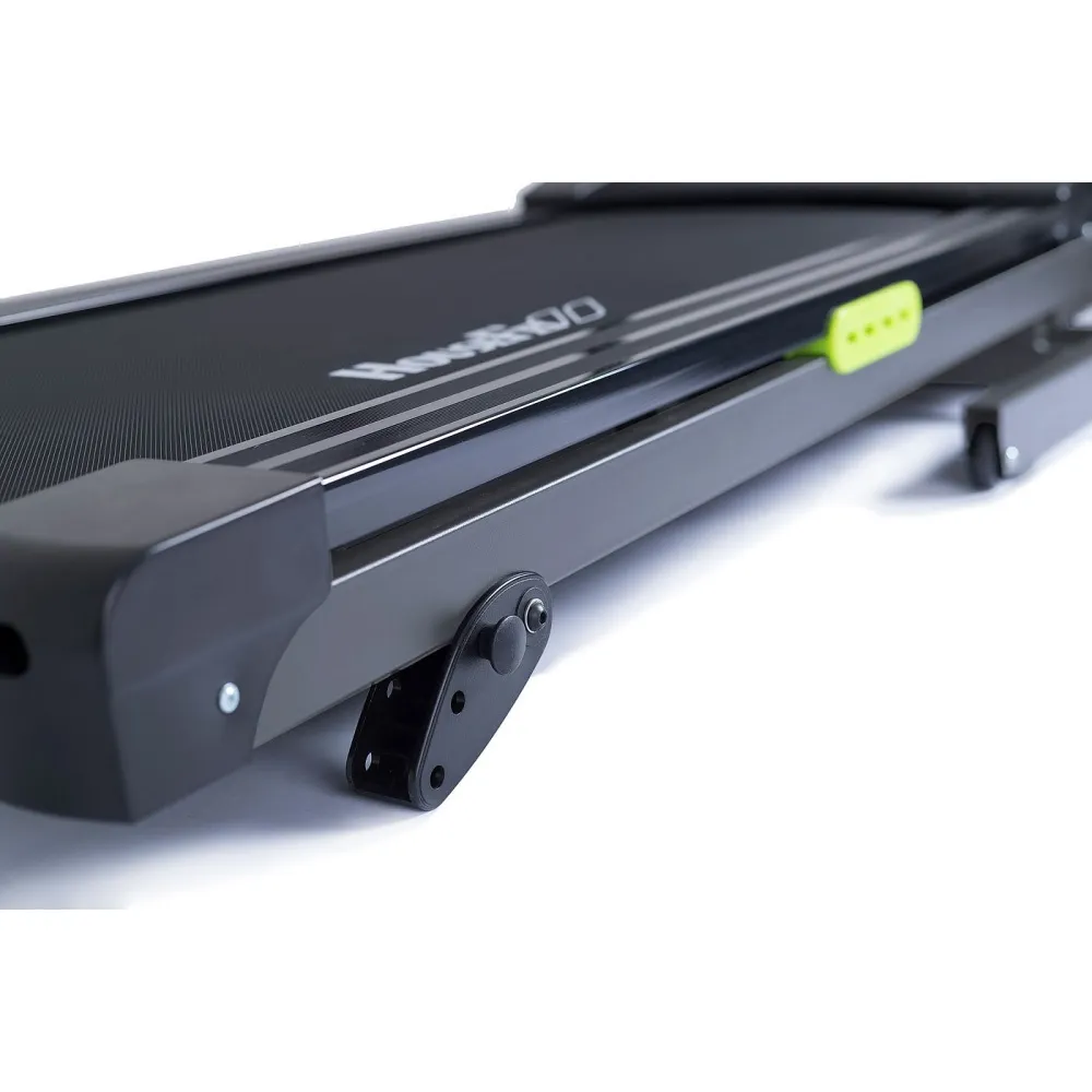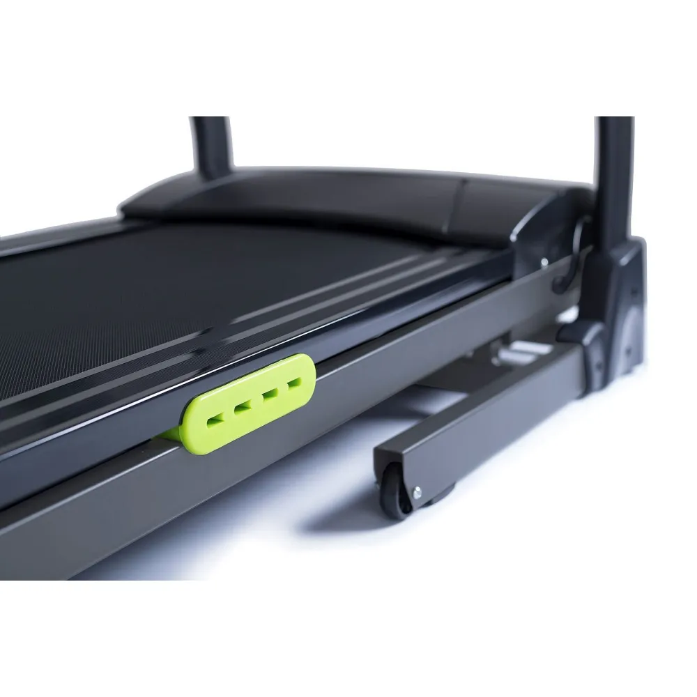 Складная конструкция с двухфазной гидравлической системой делает процесс складывания тренажера легким, а также обеспечивает плавное опускание бегового полотна при раскладывании. Транспортировка дорожки осуществляется при помощи двух роликов.