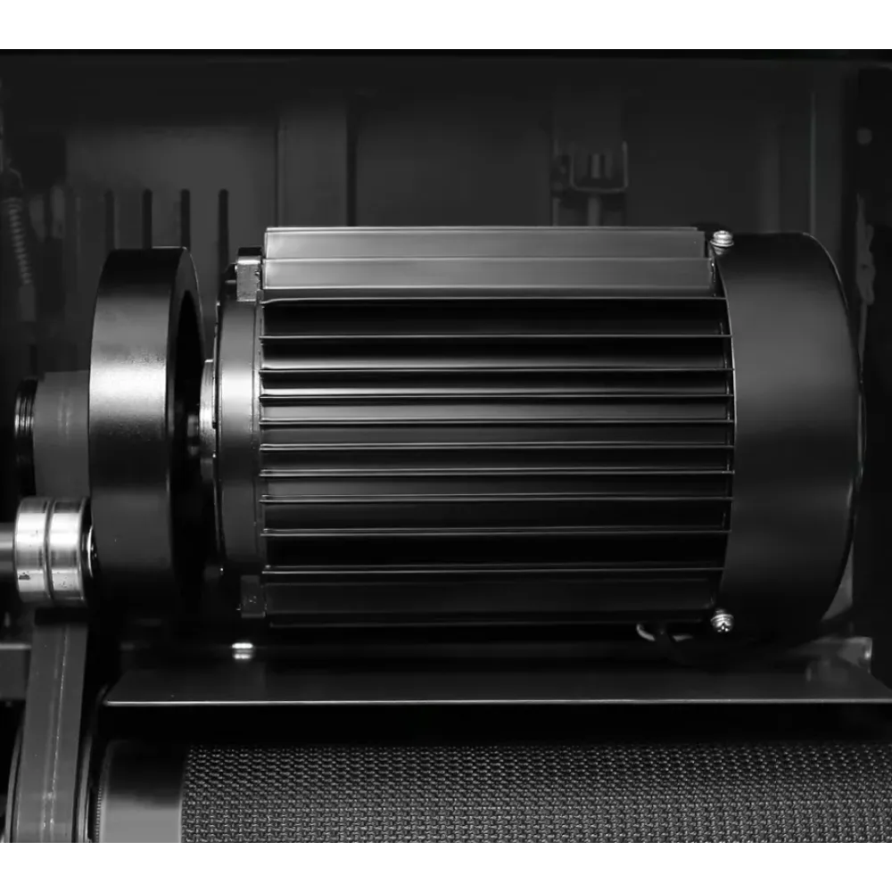 Мотор, произведенный американской компанией Leeson, мощностью 4.0 л.с. переменного тока (AC), без проблем выдерживает до 8 часов непрерывной нагрузки в день. Несомненно, важно, чтобы и другие параметры поддерживали заявленную работоспособность. Поэтому на GO T66 установлено полотно коммерческого класса толщиной 2.8 мм, рассчитанное исключительно на длительную эксплуатацию. Размер рабочей зоны дорожки составляет 157*56 см, это обеспечивает полную свободу движений и открывает широкие возможности для разнообразия тренировочного процесса. Что касается остальных характеристик, то они также держат максимально высокую планку - скорость разгоняется до 22 км/ч, а угол наклона изменяется от 0 до 15%. Для безопасности на тренажере установлены световые индикаторы движения. Зеленый цвет показывает, что дорожка находится в режиме ожидания. Красный цвет сигнализирует о том, что беговое полотно находится в движении, нужно быть осторожным при подходе к тренажеру и его эксплуатации. Оборудование выдерживает максимальный вес пользователя до 180 кг.