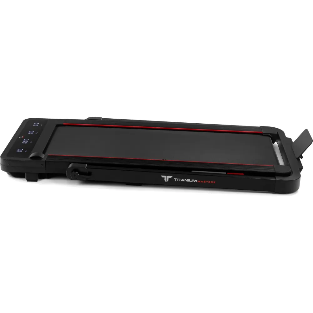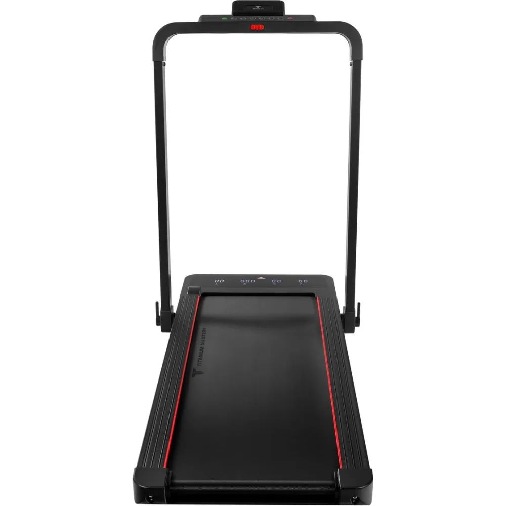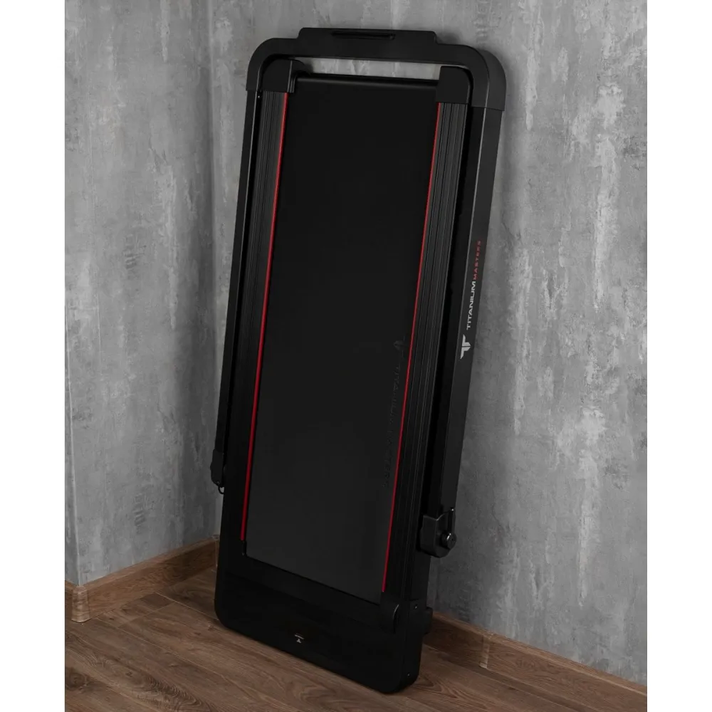 Titanium Masters Slimtech C150 – это компактная и ультратонкая беговая дорожка, предназначенная для широкого круга пользователей. Малые размеры тренажера позволяют экономить пространство при эксплуатации и хранении. Он легко складывается и переносится. Дорожка оснащена мощным двигателем от Fuji Electric мощностью 1,5 л.с. Максимальная масса пользователя может составлять до 110 кг. Беговое полотно имеет длину 111 см и ширину 43 см, что обеспечивает комфорт во время ходьбы или бега на небольших и средних скоростях. Дорожка предлагает два режима: первый — для ходьбы без поручней со скоростью до 6 км/ч, управление осуществляется через пульт дистанционного управления; второй — с поручнями, позволяющий бегать или ходить со скоростью до 13 км/ч. Амортизация на базе 8 плоских эластомеров VCS Lite™ и 4 прорезиненных опор значительно уменьшает нагрузку на суставы. Тренажер просто собирается и разбирается, его толщина в сложенном виде составляет всего 13 см. Slimtech C150 можно хранить как горизонтально, так и вертикально, при этом он весит 32 кг и легко перемещается на роликах. Компьютер тренажера имеет сенсорные клавиши и 4 высококонтрастные LED экрана, выводящие основные тренировочные данные. Встроенные программы нацелены на развитие выносливости и укрепление сердечно-сосудистой системы. Также есть подставка для мобильных устройств, чтобы делать тренировки более увлекательными. Преимущества: Качественные компоненты Компактный дизайн Сложенная толщина 13 см Два режима эксплуатации Двигатель Fuji Electric 1,5 л.с. Беговое полотно 111*43 см Макс. скорость 13 км/ч Хорошая амортизация LED дисплей Макс. вес пользователя 110 кг