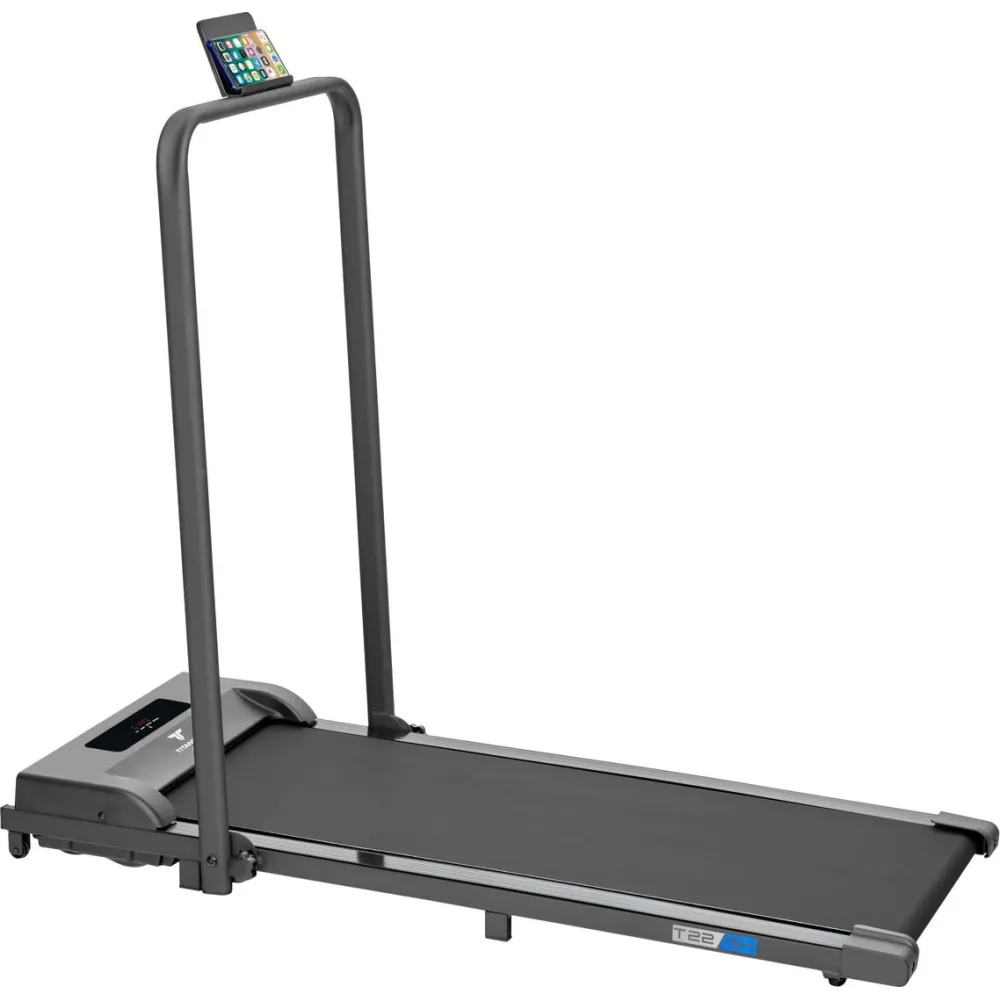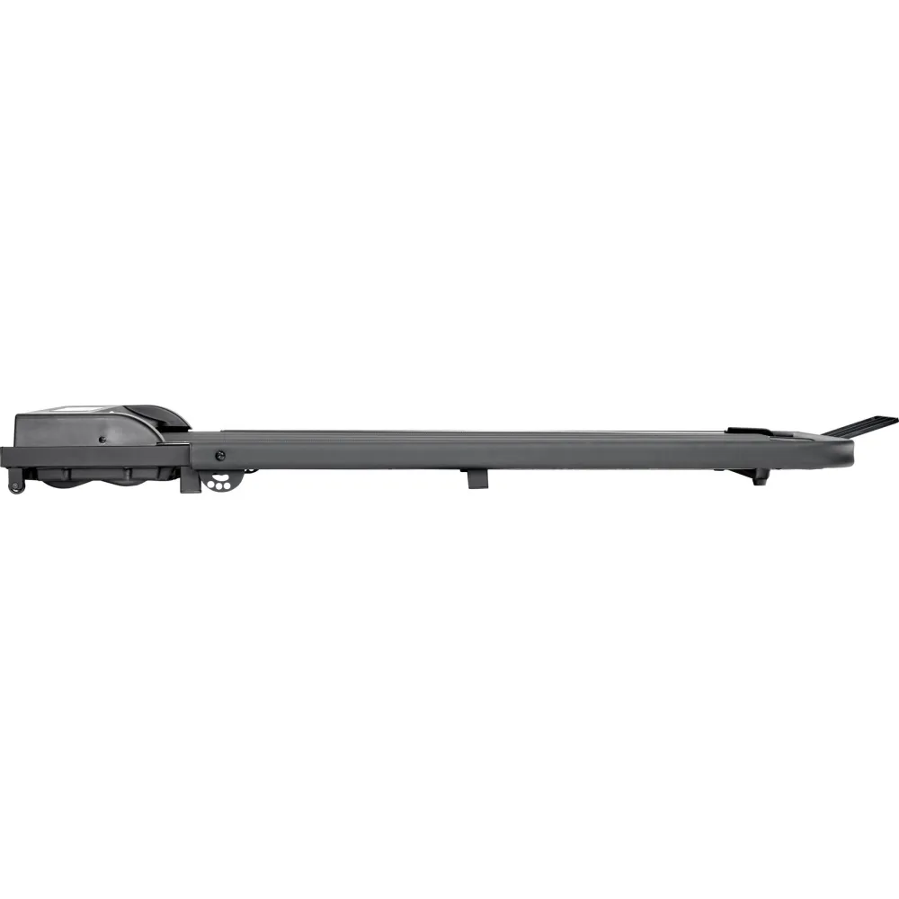 Электрическая беговая дорожка Titanium One T22 SH APP обладает компактными размерами и доступной ценой, что делает её отличным выбором для начинающих и пользователей со средним уровнем подготовки. Несмотря на то, что она относится к базовому классу, она полностью удовлетворяет основные потребности. Двигатель постоянного тока американской марки Leeson Electric имеет мощность 1,25 л.с., что позволяет регулировать скорость от 1 до 8 км/ч, что подходит для бега трусцой. Размеры бегового полотна составляют 100 см в длину и 38 см в ширину, что достаточно для комфортных тренировок. Хотя дорожка подходит для людей ростом до 190 см, она рассчитана на максимальный вес пользователя 90 кг. Titanium One T22 SH APP не занимает много места. В рабочем состоянии её размеры 135 см в длину и 56 см в ширину, а в сложенном виде – всего 12 см в толщину. Конструкция легко разбирается и собирается, а вес в 17 кг и наличие роликов делают её переноску простой задачей. Тренировочный компьютер с LED дисплеем показывает скорость, дистанцию, время и калории. Также предусмотрены три программы обратного отчета для достижения целевых показателей. Есть возможность подключения приложений Fitshow и Zwift, что расширяет функционал и разнообразит тренировки. Titanium One T22 SH APP – идеальный вариант бюджетной беговой дорожки с полным набором необходимых функций.