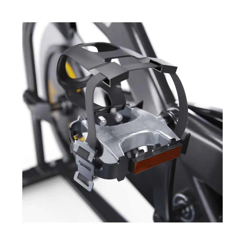 Нескользящие педали в форме стальной клетки подходят для всех размеров стопы и обеспечивают полную защиту, предотвращая скольжение и движение вперед. Они также оснащены регулируемыми ремешками для надежной фиксации. Транспортировочные колеса велосипеда облегчают его перемещение.