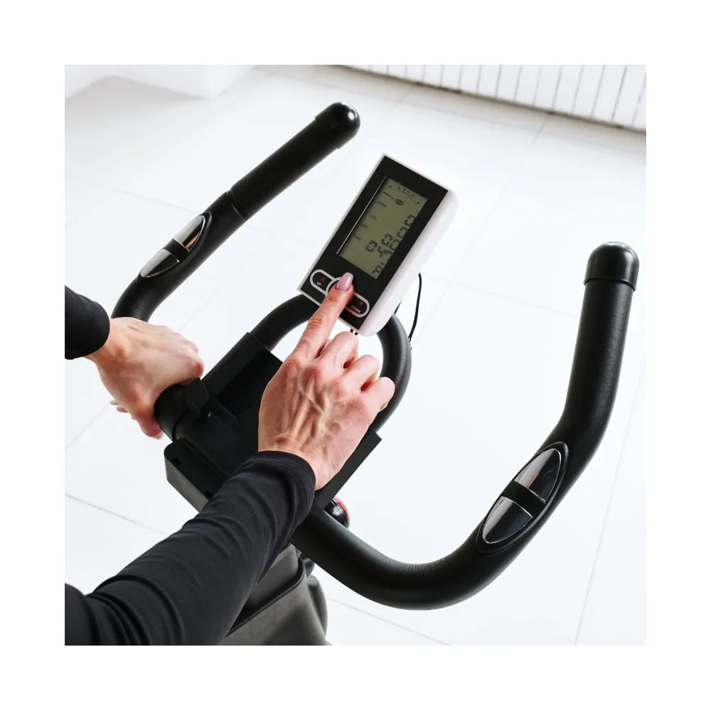 Цифровой ЖК-экран на велотренажере позволяет отслеживать время тренировки, скорость, количество сожженных калорий, дистанцию, частоту сердечных сокращений и данные одометра в режиме реального времени. Это позволяет легко корректировать режим тренировок. Держатель для планшета позволяет вам слушать музыку или смотреть видео во время тренировки, что делает ваши тренировки более приятными.