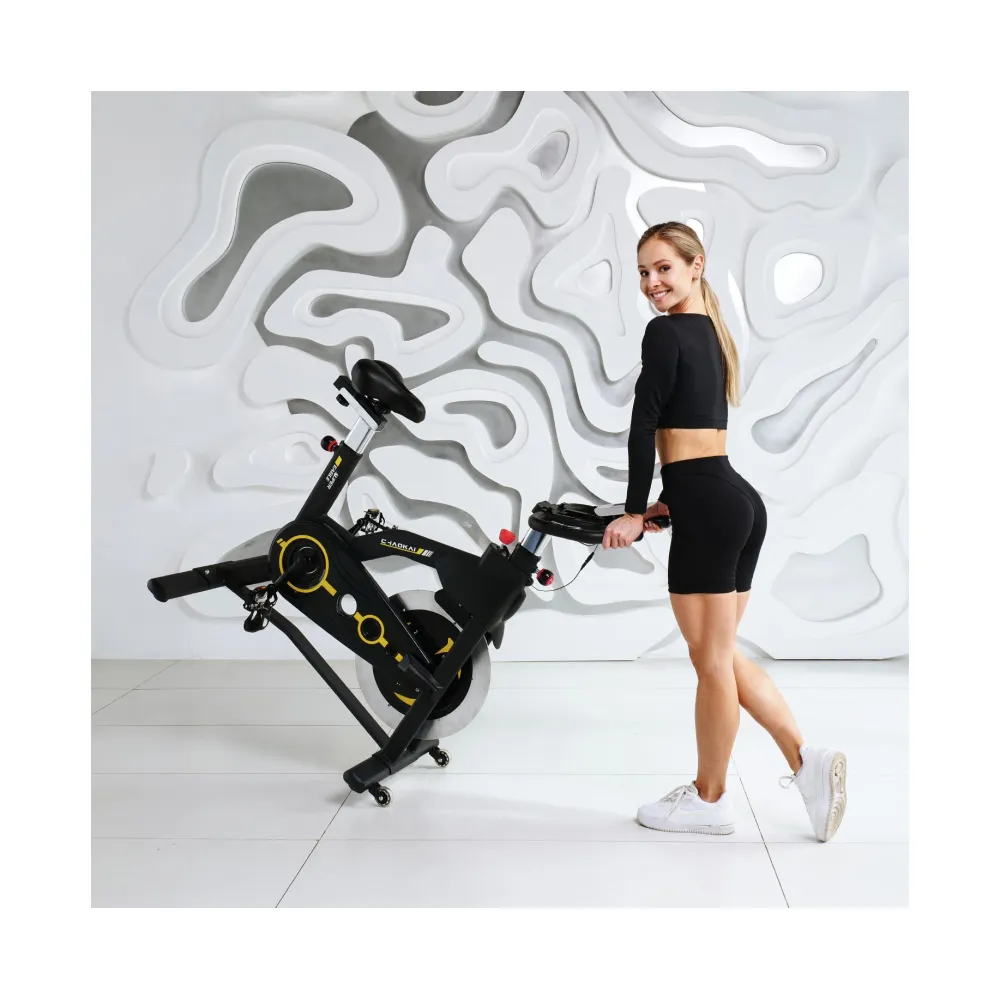 Спин-байк CHAOKE с дисплеем удобнее и тише других. Прочная стальная рама и алюминиевый маховик весом 19 килограмм обеспечивают устойчивость во время езды на велосипеде. Он выдерживает нагрузку до 150 кг и подходит для пользователей ростом от 146 до 198 см.