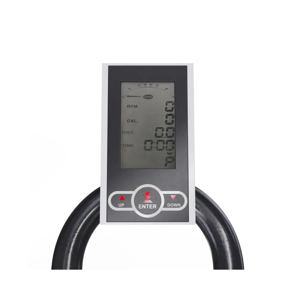 Магнитный велотренажер оснащен жидкокристаллическим дисплеем и датчиком частоты сердечных сокращений, который отслеживает вашу скорость, количество оборотов в минуту, сожженные калории, пройденное расстояние и время тренировки.
