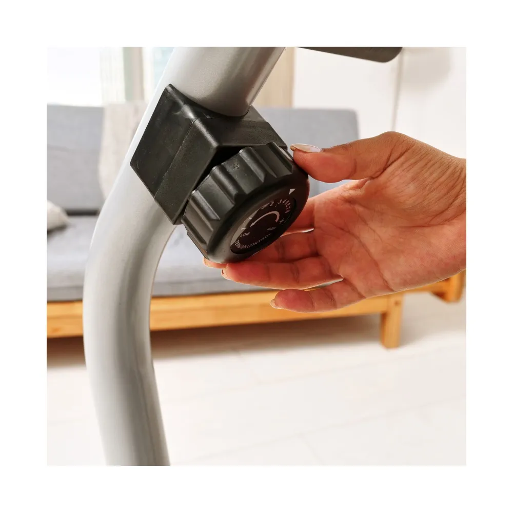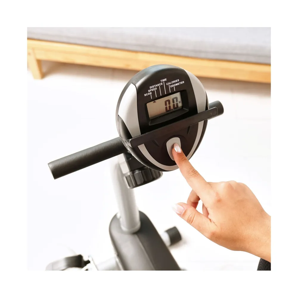 Велотренажер оснащен инерционным маховиком весом 5 кг с возможностью крутить педали в обе стороны. Нагрузка осуществляется с помощью магнитной системы и регулируется механически на 8 уровней.