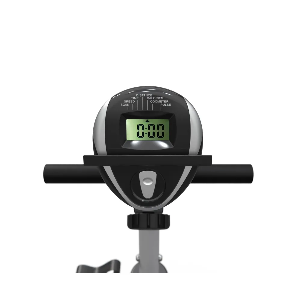 Монохромный LCD дисплей Kondition отображает следующие показатели: скан, скорость, время, калории, пульс и расстояние. Для работы консоли требуются 2 батарейки типа ААА (входят в комплект).