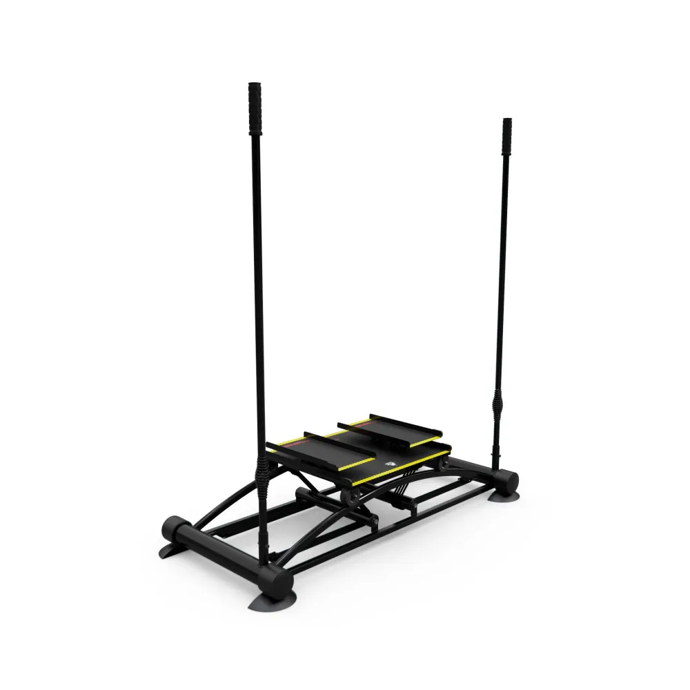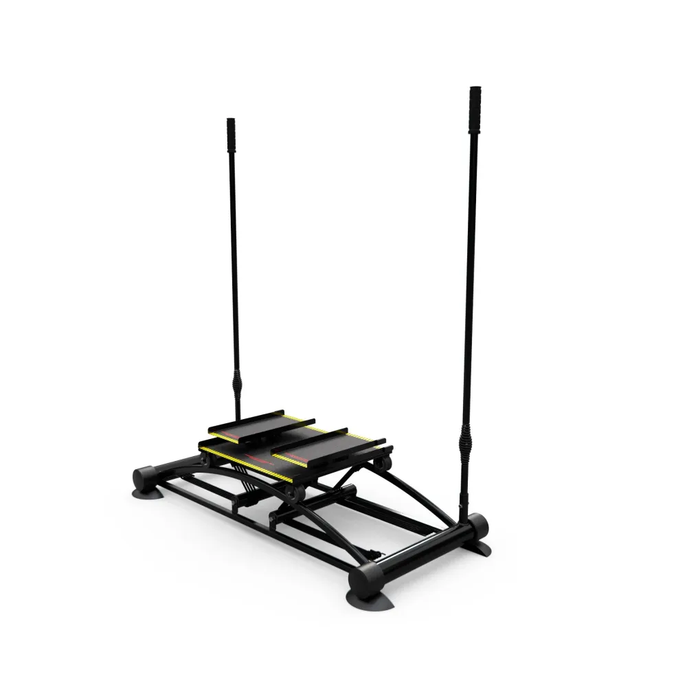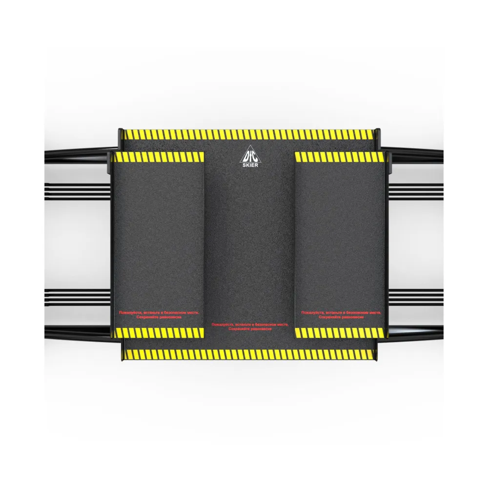 Педали на горнолыжном тренажере обеспечивают удобное и безопасное положение стопы. Они имеют шершавое нескользящее покрытие и бортики по краям, которые предотвращают соскальзывание ног во время тренировки. На тренажере также есть поручни, которые обеспечивают дополнительную поддержку и устойчивость во время занятий.