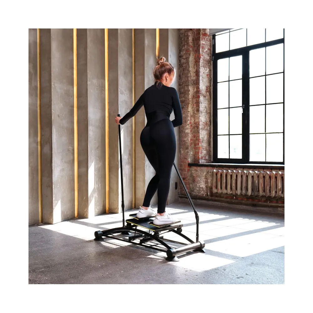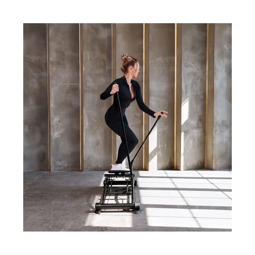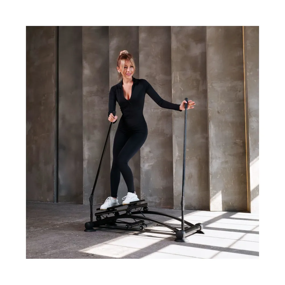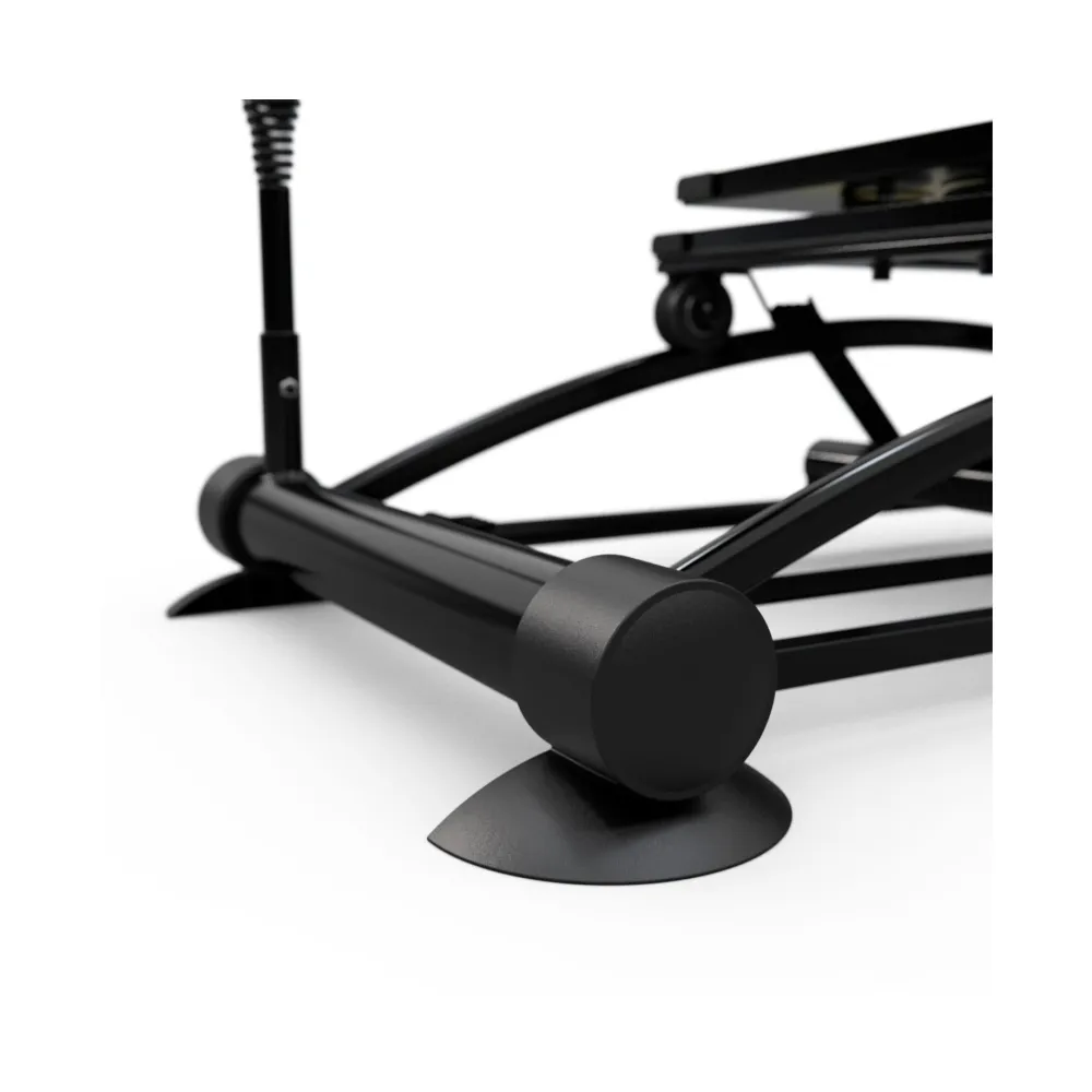 Педали на горнолыжном тренажере обеспечивают удобное и безопасное положение стопы. Они имеют шершавое нескользящее покрытие и бортики по краям, которые предотвращают соскальзывание ног во время тренировки. На тренажере также есть поручни, которые обеспечивают дополнительную поддержку и устойчивость во время занятий.
