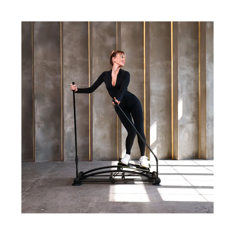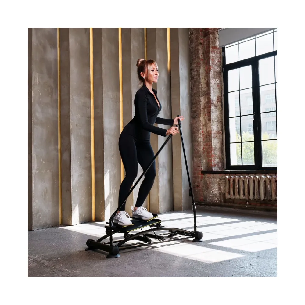 Система нагрузки ременная и состоит из 8-ми эластичных тросов длиной 49 см и толщиной 8 мм. Уровень нагрузки регулируется количеством прикрепленных тросов. Это позволяет настроить нагрузку в зависимости от вашего уровня физической подготовки и желаемого результата. Чем больше прикреплено тросов, тем выше уровень нагрузки.