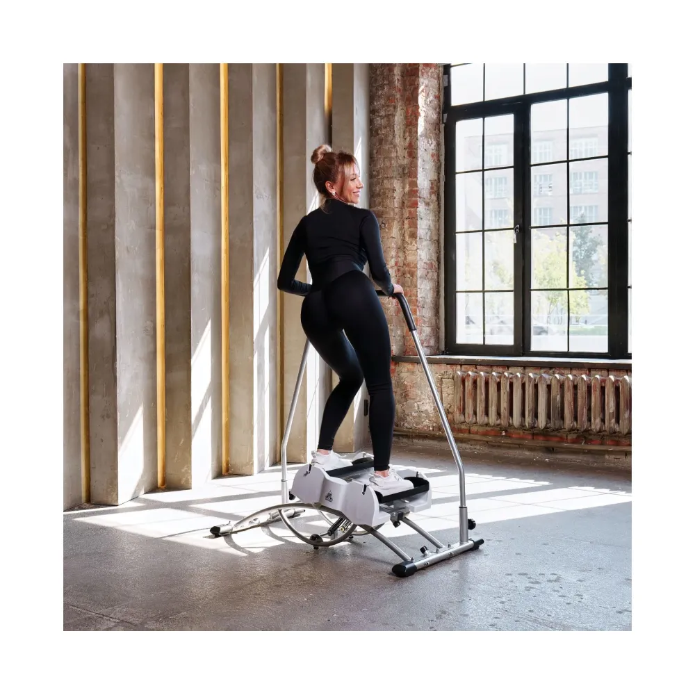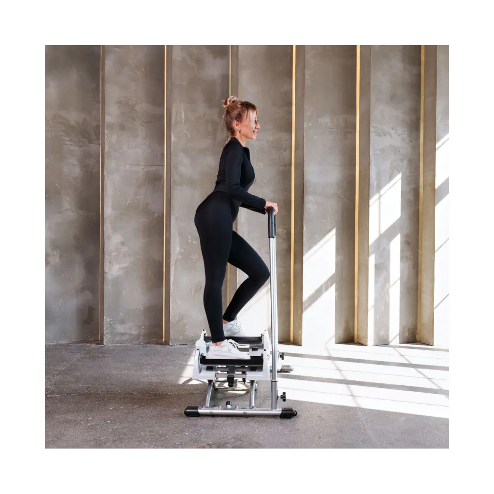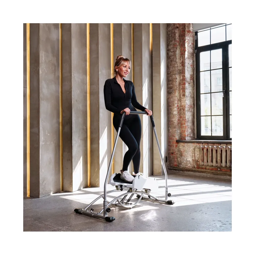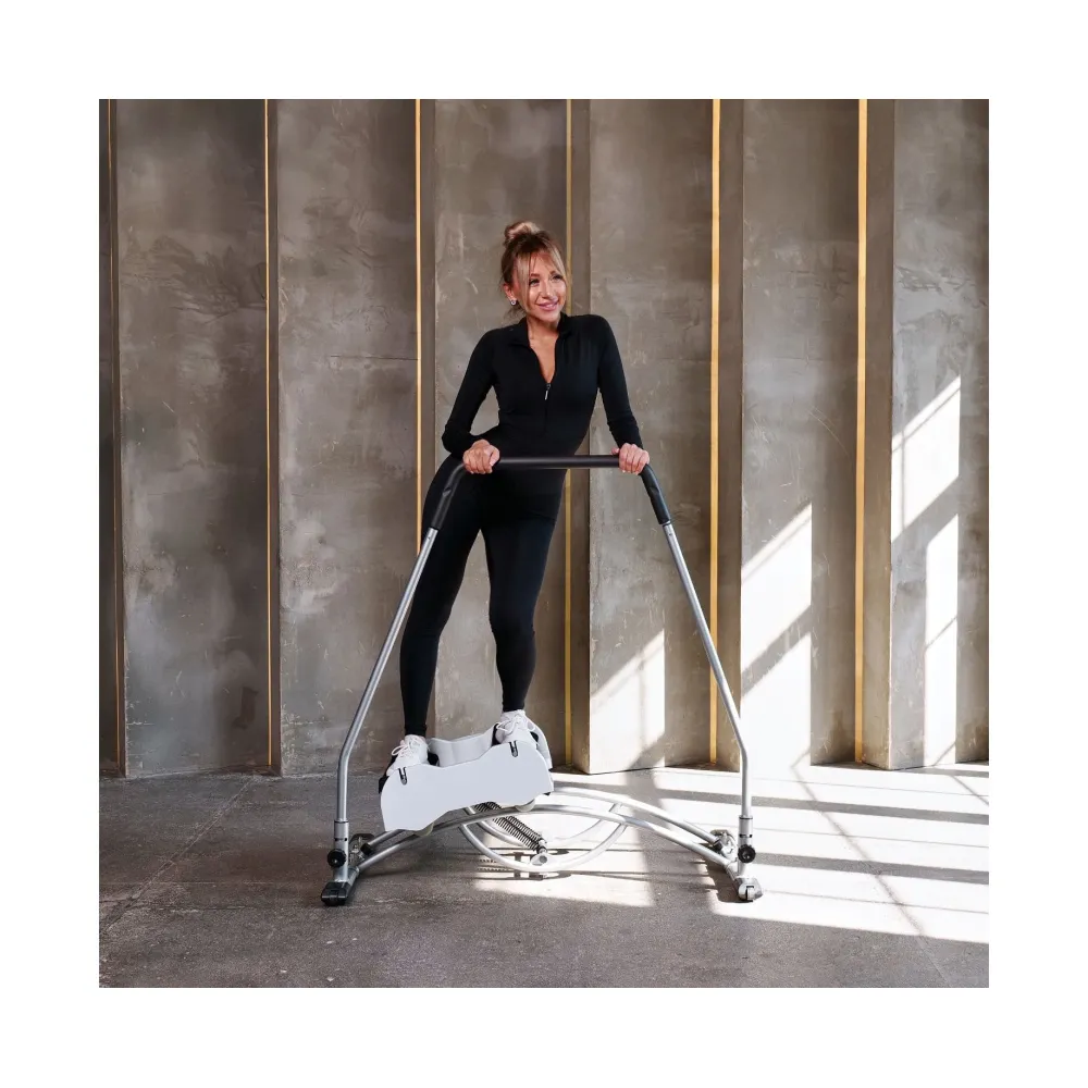Пользователь, удерживается за поручень, раскачивается в стороны, не отрывая ног от педалей, совершая движения, похожие на катание на лыжах.