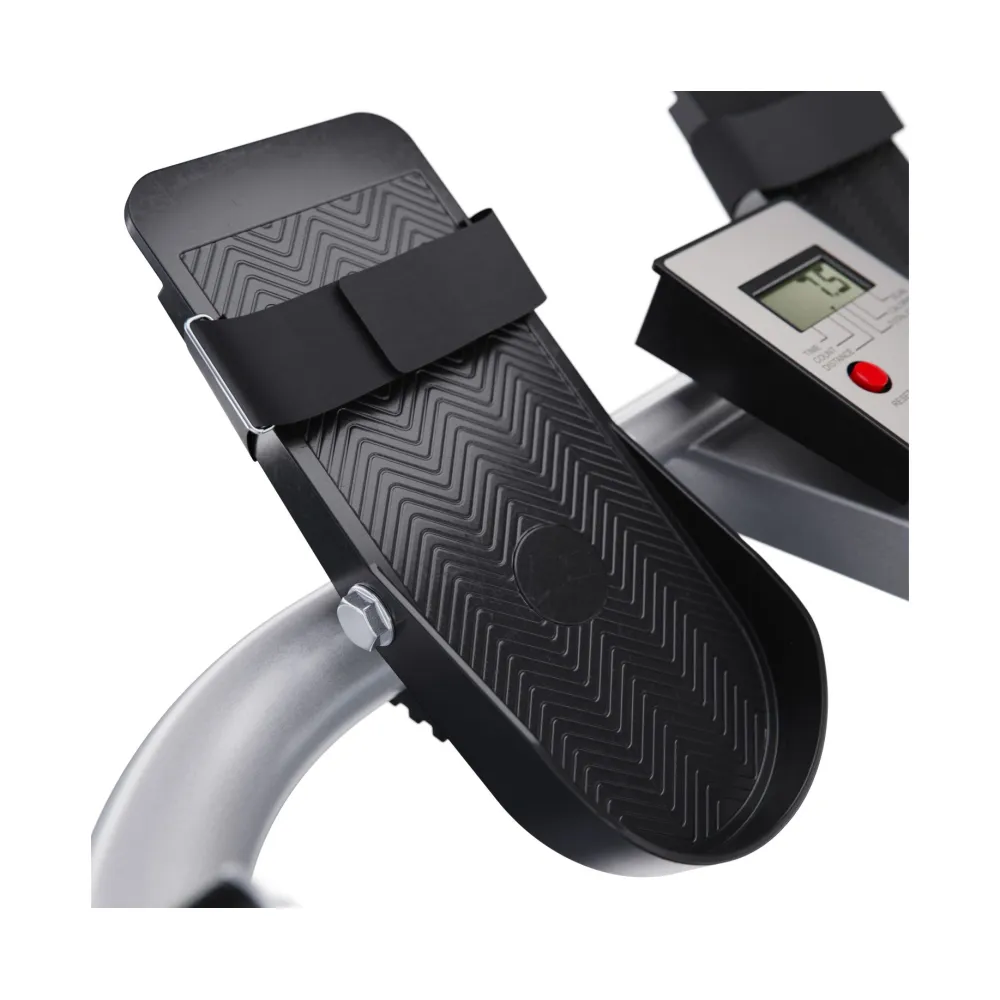 Максимальный вес пользователя — 100 кг, что делает тренажёр подходящим для людей с разной физической подготовкой. Тренажер подходит для дома благодаря компактным размерам 115 x 73 x 20 см. Сиденье 30 х 23 х 3 см и педали 11 х 24 см позволяют выполнять упражнения с комфортом. Длина слайда (трека) составляет 85 см.