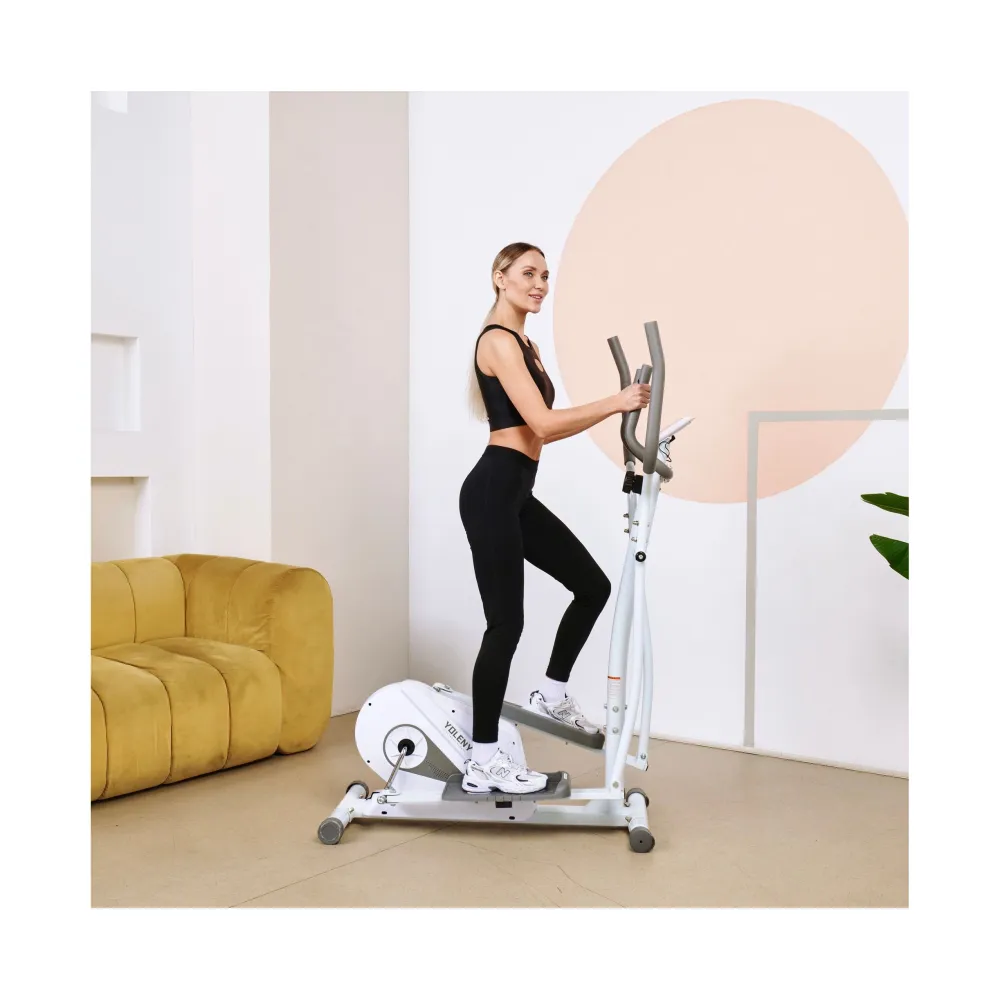 Эллиптический тренажёр DFC YOLENY — идеальный выбор для тех, кто хочет поддерживать свою физическую форму и заботиться о здоровье. Благодаря заднему расположению маховика, этот тренажёр обеспечивает плавный и тихий ход, а также равномерное распределение нагрузки на мышцы. Максимальный вес пользователя составляет 130 кг, что позволяет использовать тренажёр людям с разной физической подготовкой.