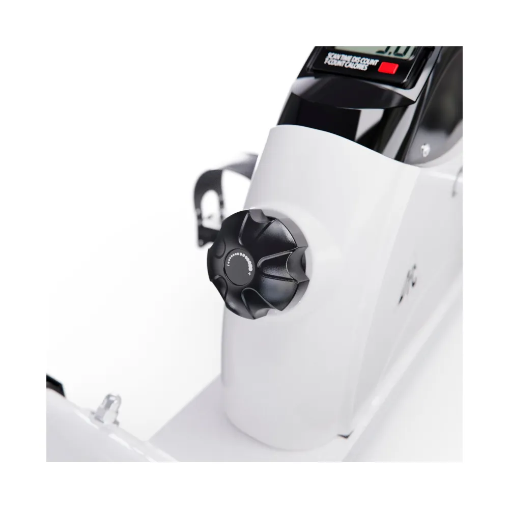 Велотренажер оснащен простой и понятной консолью, для работы которой требуется всего одна батарейка ААА (входит в комплект). Дисплей отображает основные параметры тренировки: длительность, дистанцию, количество оборотов и количество потраченных калорий. Это позволяет контролировать процесс тренировки и следить за прогрессом.