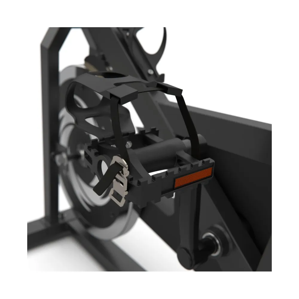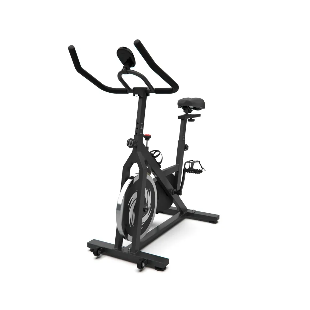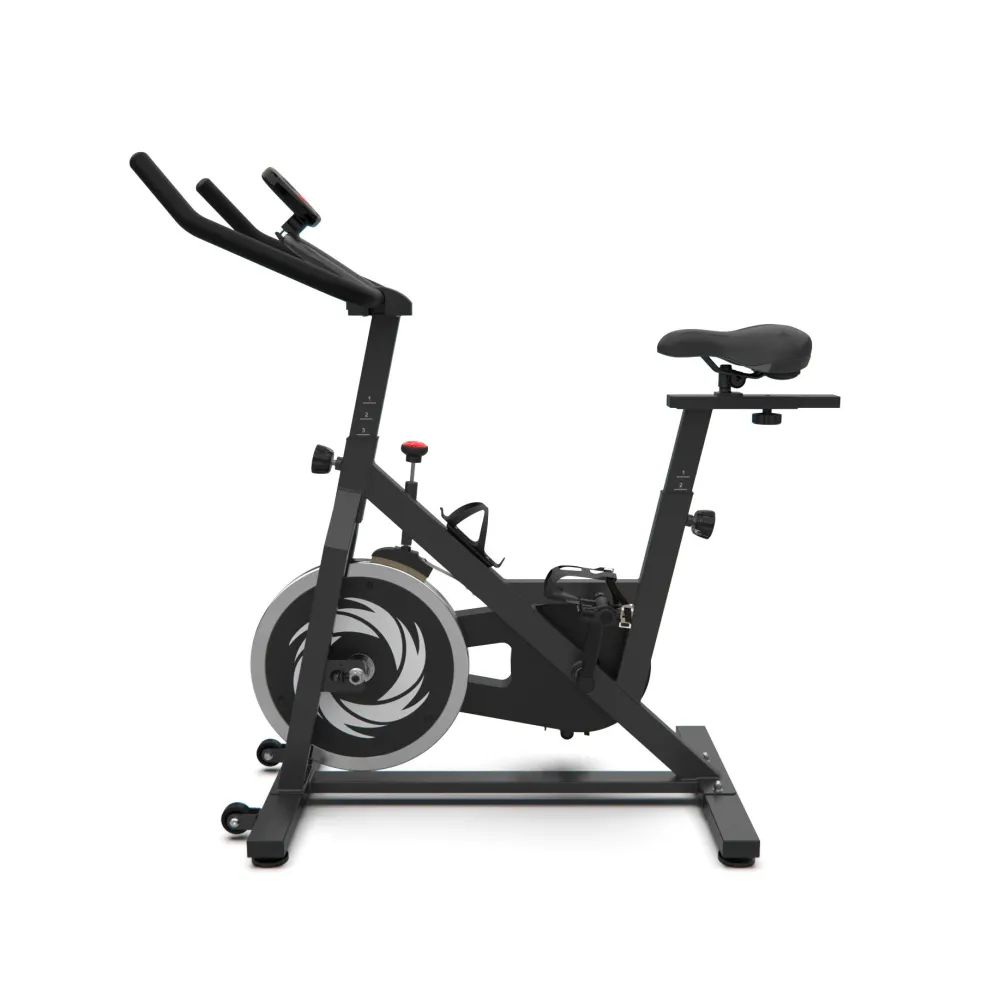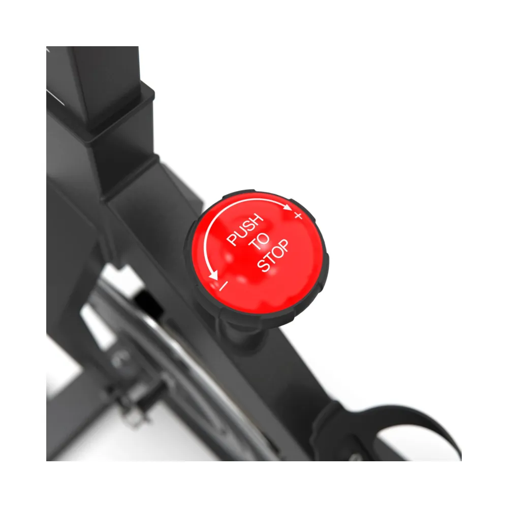 Спин-байк оснащен маховиком весом 15 кг и колодочной системой нагрузки. Регулировка нагрузки происходит механически и использует бесступенчатую систему с множеством уровней нагрузки. Таким образом, вы можете выбрать подходящий уровень нагрузки для своих потребностей.
