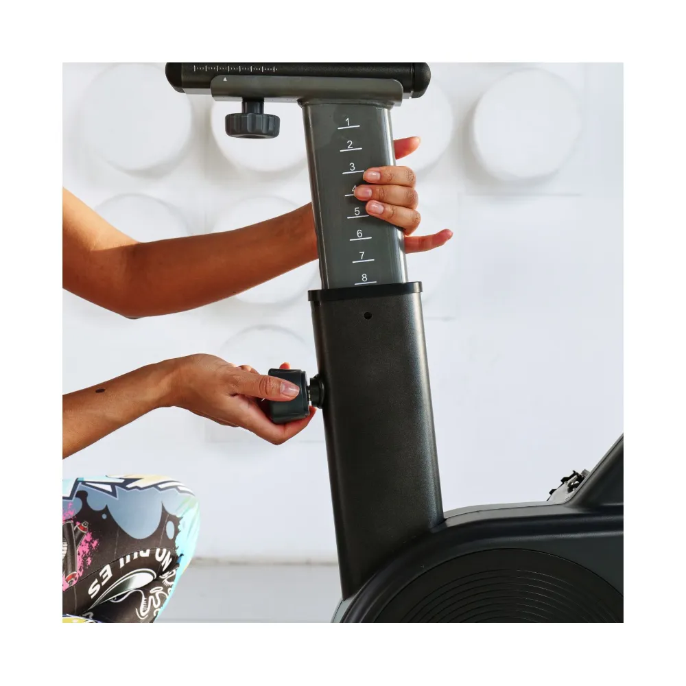 На велосипеде можно регулировать сиденье не только по высоте и положению, но и по наклону, что дает возможность изменять степень нагрузки и настраивать положение тела на сиденье. Регулировка руля по высоте дает дополнительное удобство и разнообразие. Спин-байк DFC OVICX Q200C выдерживает вес пользователя до 130 кг.