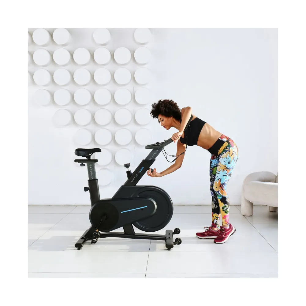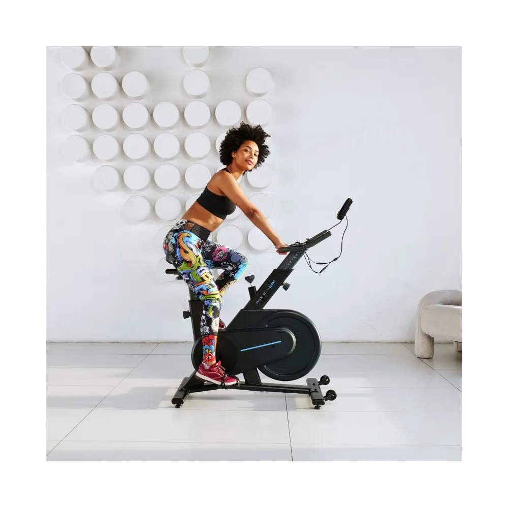 Спин-байк DFC OVICX Q200C — отличный вариант для тех, кто желает проводить качественные кардио-тренировки прямо у себя дома, имитируя катание на настоящем велосипеде. Уникальный объединенный руль с тремя видами хвата (Bullhorn, Butterfly и Aero) и покрытием, устойчивым к скольжению и поту, гарантирует удобство и безопасность в процессе тренировки.