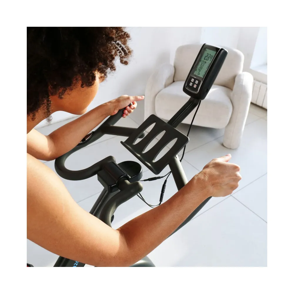 Монохромный дисплей отображает такие параметры как время, скорость, дистанция, калории, количество оборотов в минуту и пульс. Есть целевой режим и режим восстановления.