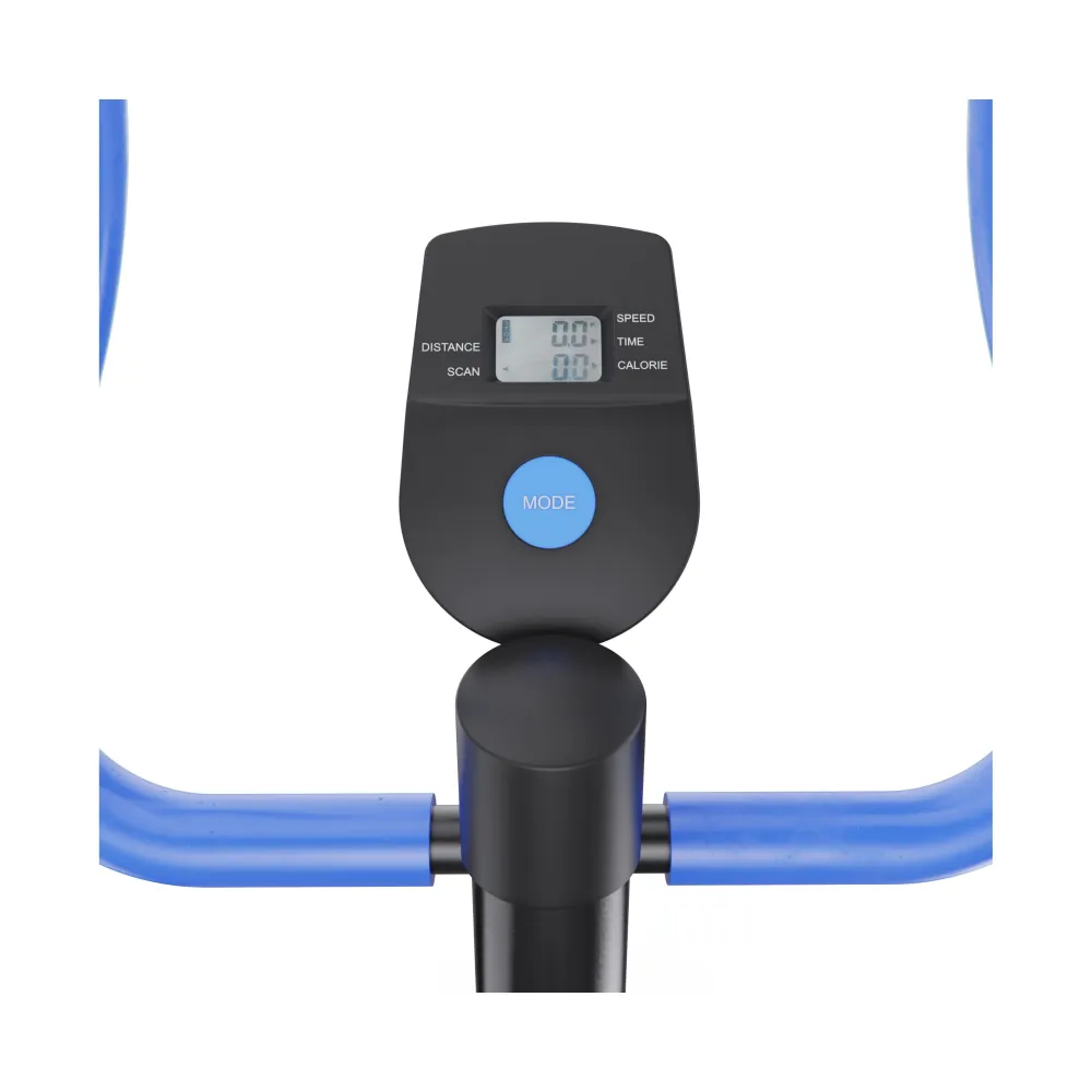 Велотренажер имеет монохромный LCD-дисплей, который отображает ключевые параметры тренировки: время, калории, дистанцию, скорость и сканирование. Это позволит отслеживать прогресс и корректировать нагрузку в реальном времени. Для работы консоли используются батарейки типа АА (1.5 В) — простое и удобное решение, не требующее подключения к сети. Батарейки в комплект не входят.