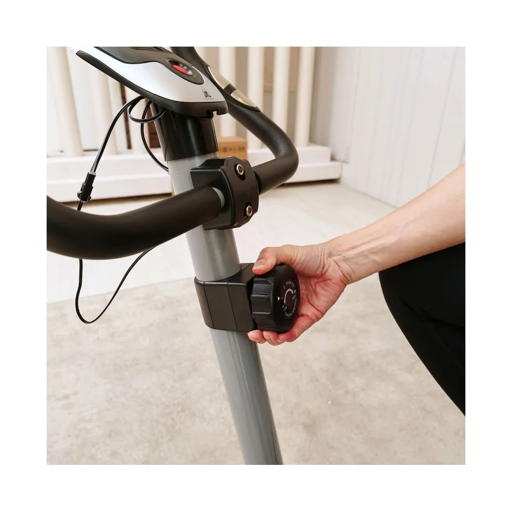 Механическая магнитная система изменения нагрузки и 8 уровней интенсивности позволяют подстроить тренировку под свои индивидуальные потребности и цели. Маховик весом 5 кг обеспечивает плавную и бесшумную работу тренажера, а также устойчивость во время упражнений.