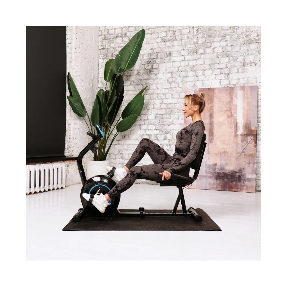 Велотренажер с удобной горизонтальной посадкой и бесшумной электромагнитной системой нагружения. Нагрузка имеет электронную регулировку с консоли, 8 уровней. Мягкое регулируемое сиденье с мягкой спинкой.