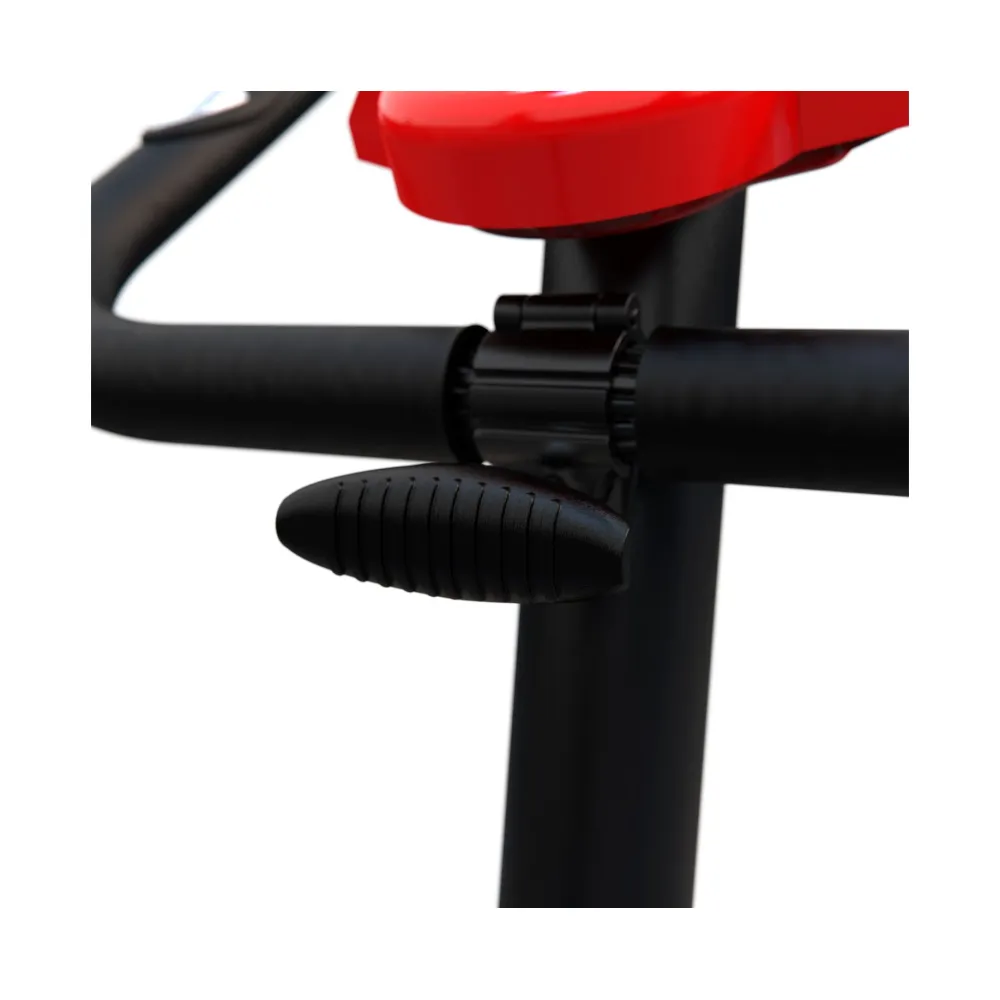 Дополнительными преимуществами тренажера является наличие компенсаторов неровности пола, что позволяет стабилизировать тренажер на любой поверхности. Регулируемые ремни на педалях обеспечивают удобство и безопасность во время тренировок. Кроме того, велотренажер имеет стильную консоль с монохромным дисплеем и синей подсветкой, которая позволяет отслеживать все показатели тренировки. Дисплей показывает такие