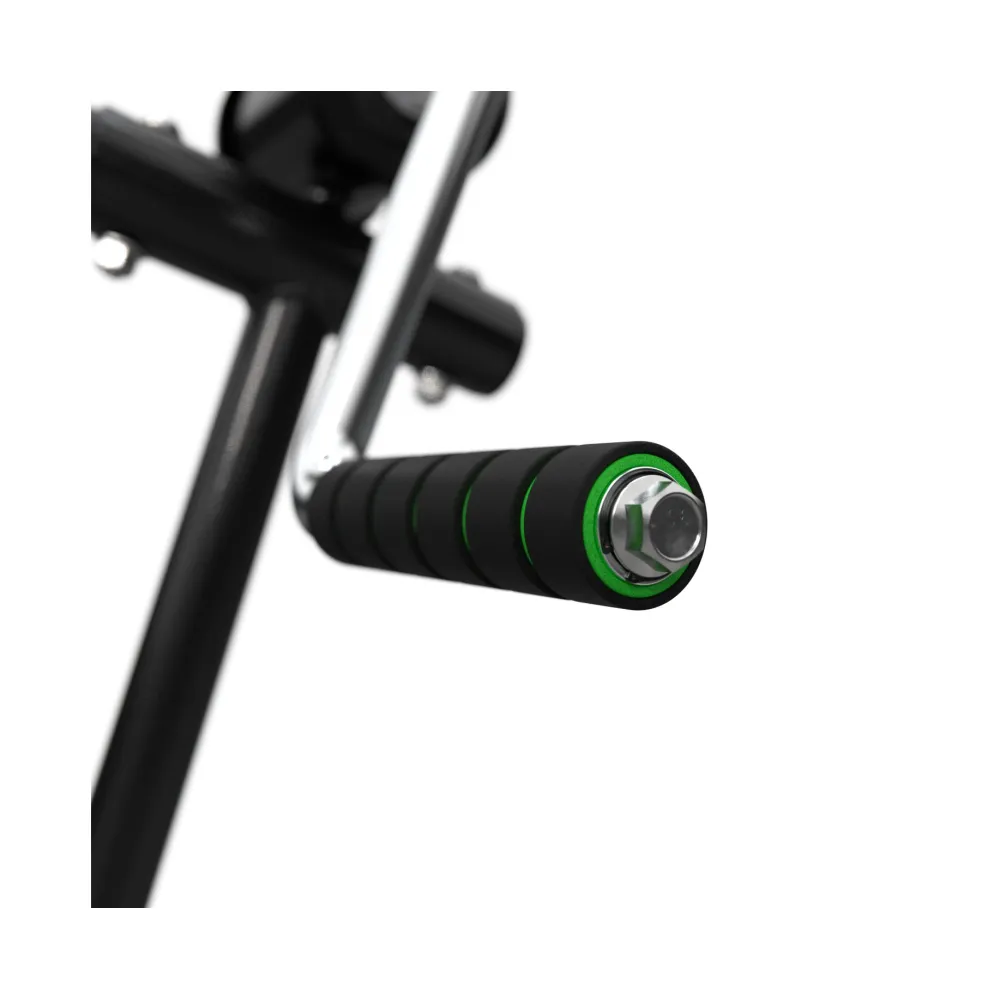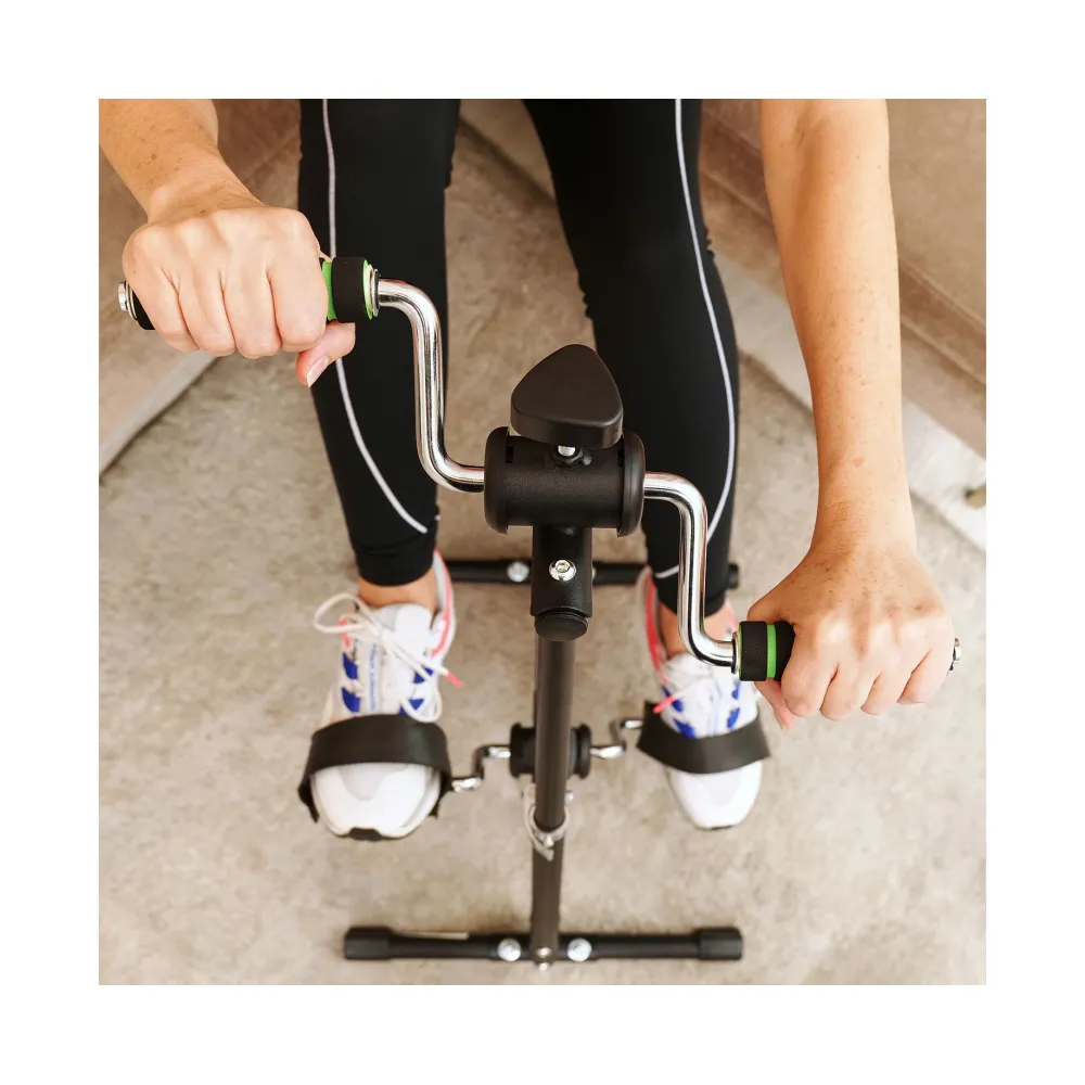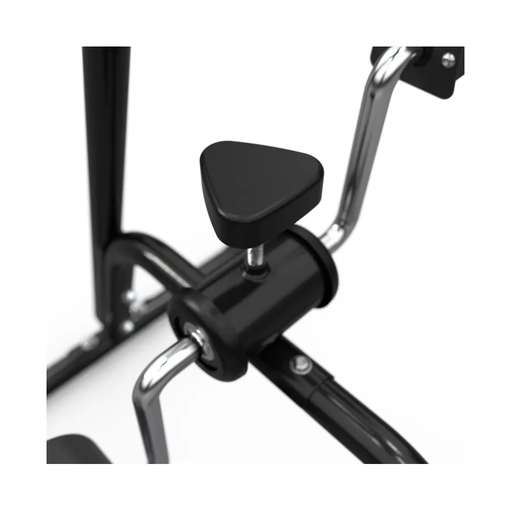Стойка велотренажера с регулировкой позволяет установить оптимальную высоту верхних педалей для удобства занятий людям разной комплекции. Педали для ног оборудованы резиновыми ремешками. Занятия на тренажере выполняются сидя на стуле, кресле и любимом диване. Необходимую нагрузку (сопротивление) педалей можно отрегулировать отдельно для рук и для ног с помощью удобной пластиковой ручки.