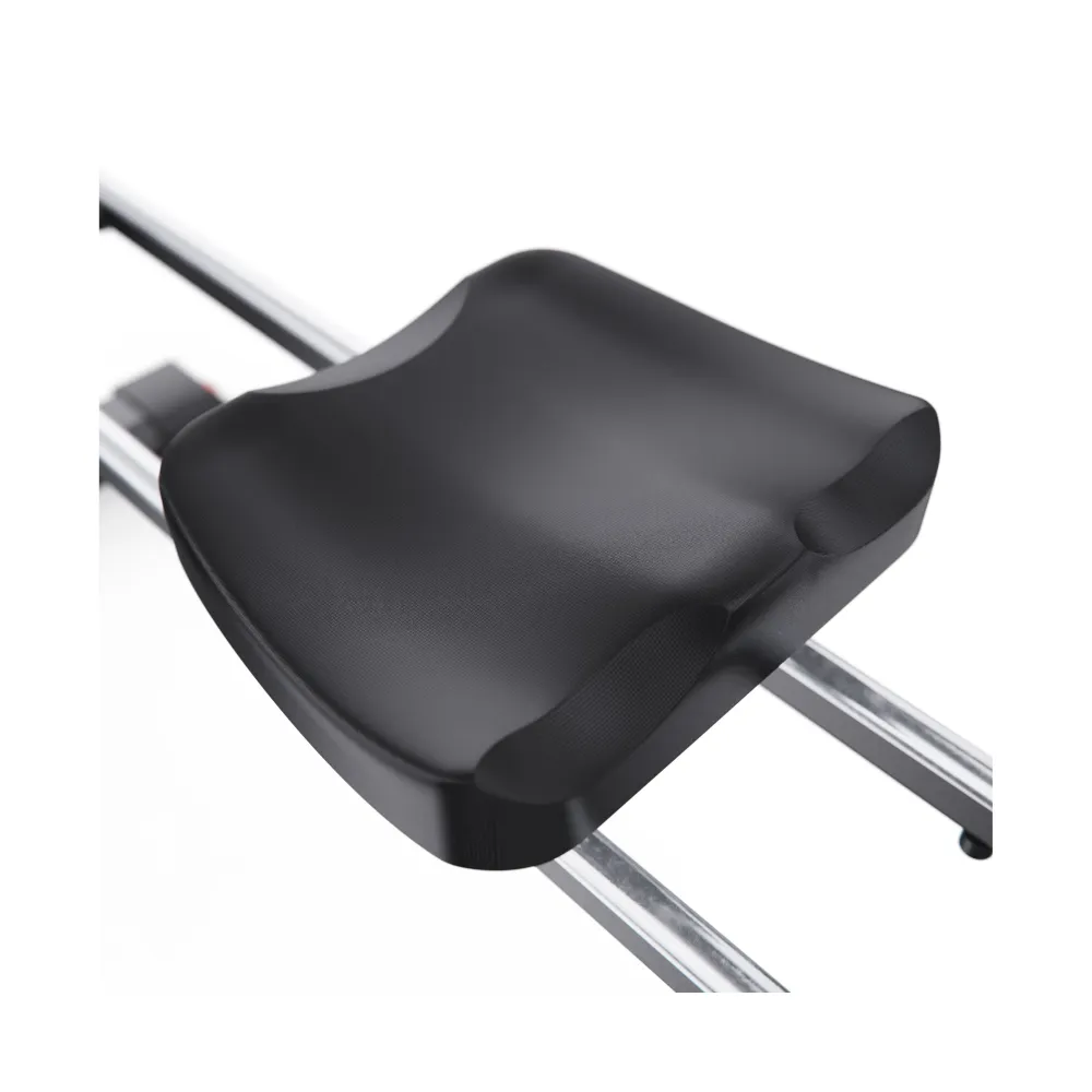 Модель рассчитана на пользователей весом до 158 кг. Удобное сиденье обеспечивает комфорт во время тренировки, позволяя сосредоточиться на выполнении упражнений. Слайд длиной 81 см обеспечивает естественную амплитуду движений и комфорт при каждом гребке. Эргономичная конструкция способствует правильному положению тела, снижая нагрузку на спину и суставы.