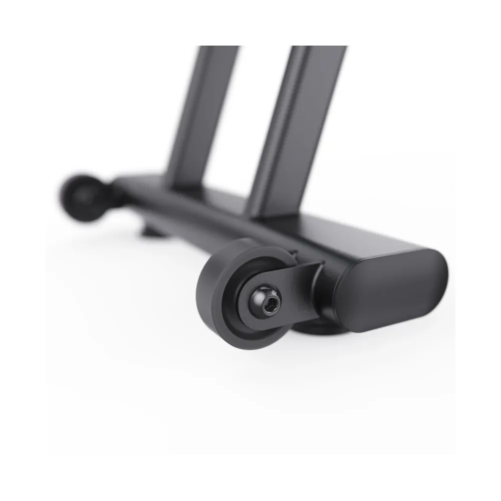 Рифленые педали с регулируемыми ремешками обеспечивают надежную фиксацию ног, а подставка под планшет позволяет использовать устройства для удобства во время тренировки. Также есть компенсаторы неровности пола, которые гарантируют стабильность тренажера, а транспортировочные ролики обеспечивают лёгкое и удобное перемещение, позволяя без труда менять его расположение в помещении.