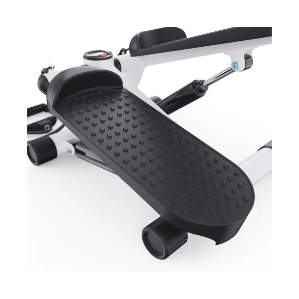 Педали степпера имеют размеры 31,5 х 11,5 см, а благодаря ручке на раме тренажёра вы можете регулировать высоту их подъёма, выбирая оптимальный уровень нагрузки. Чем выше поднимаются педали, тем больше усилий вам нужно прилагать, и наоборот.