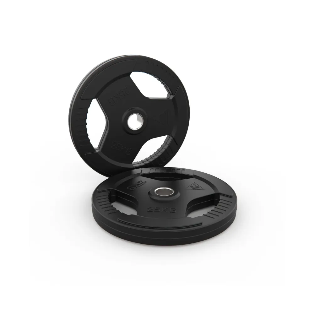 Эти диски находят применение не только в фитнесе и бодибилдинге, но также в лечебной физкультуре и других спортивных тренировках. Внутренний материал диска — чугун, а внешний — резина. Диаметр диска составляет 430 мм, а его толщина — 53 мм.