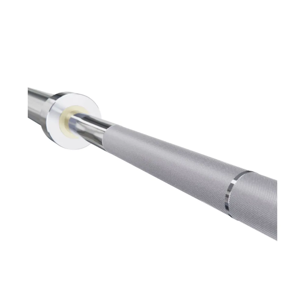 Гриф позволяет выдерживать нагрузку до 454 кг. Конструкция грифа со стальной втулкой и 4-мя подшипниками. Благодаря этому уменьшается инерция при резких движениях, например рывке со штангой.