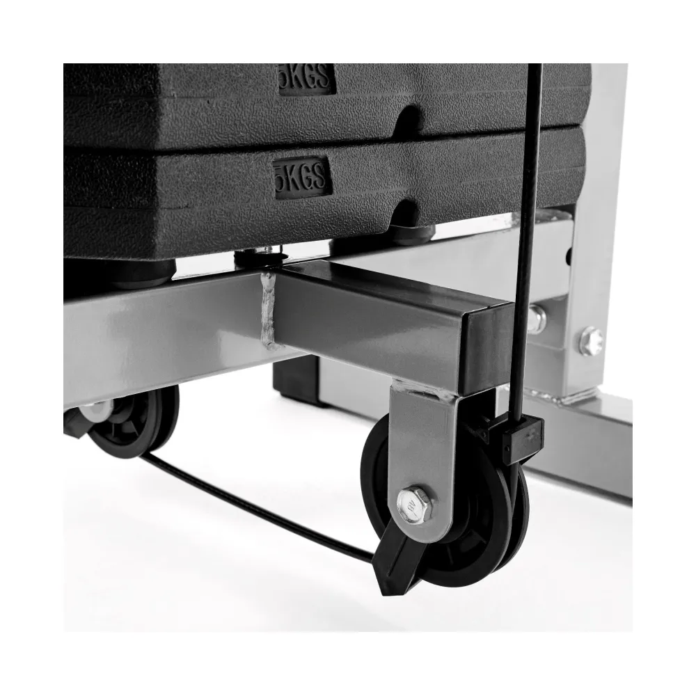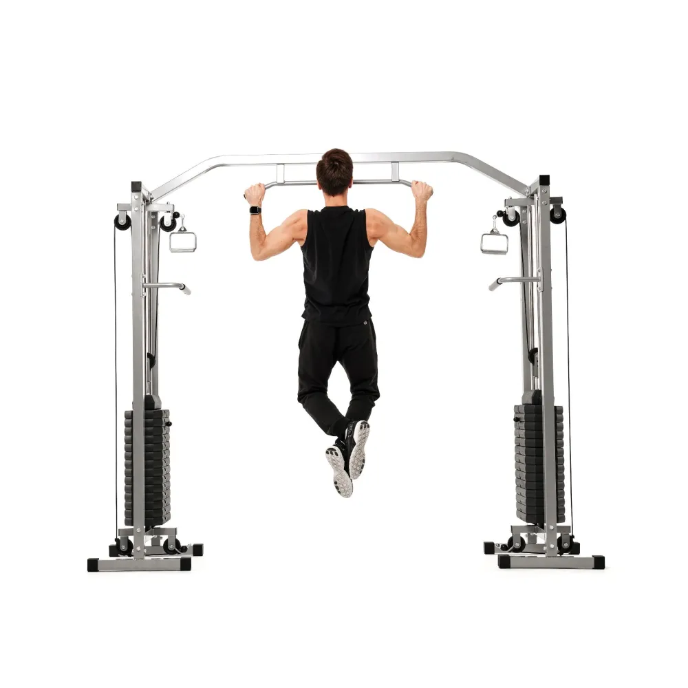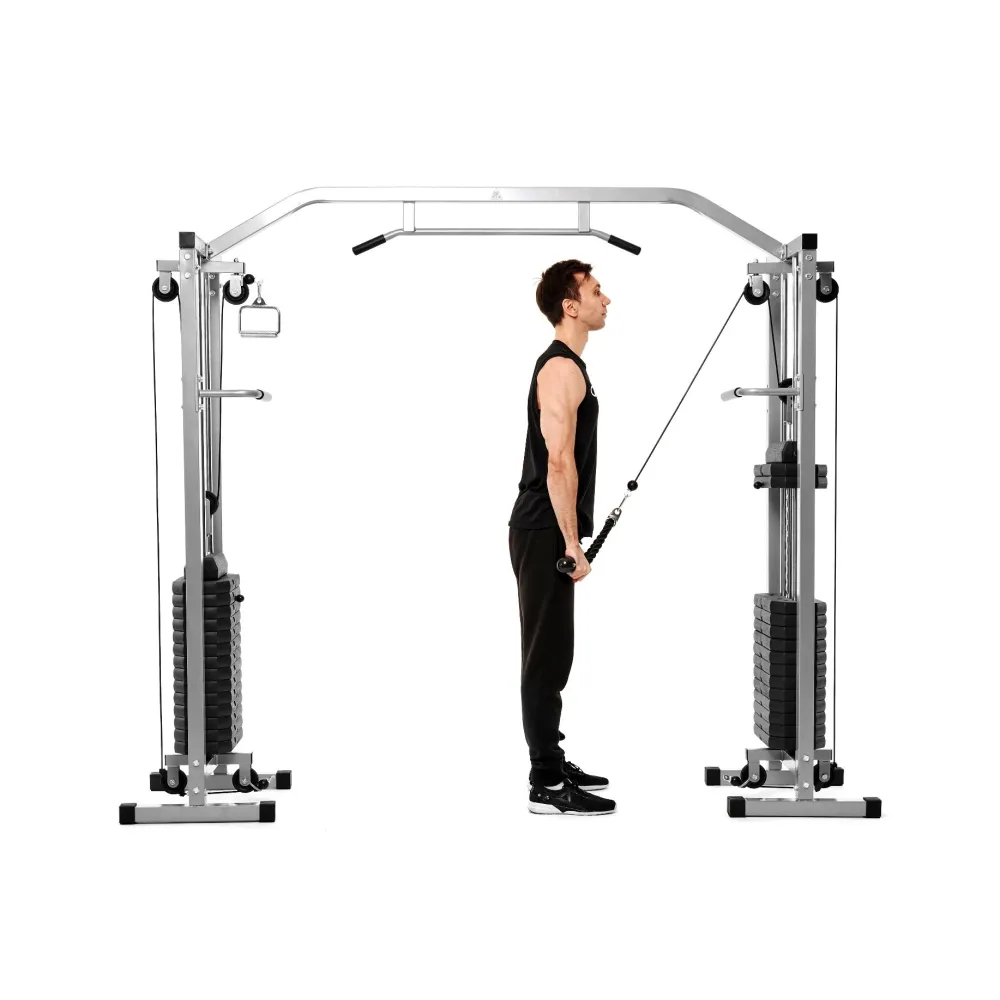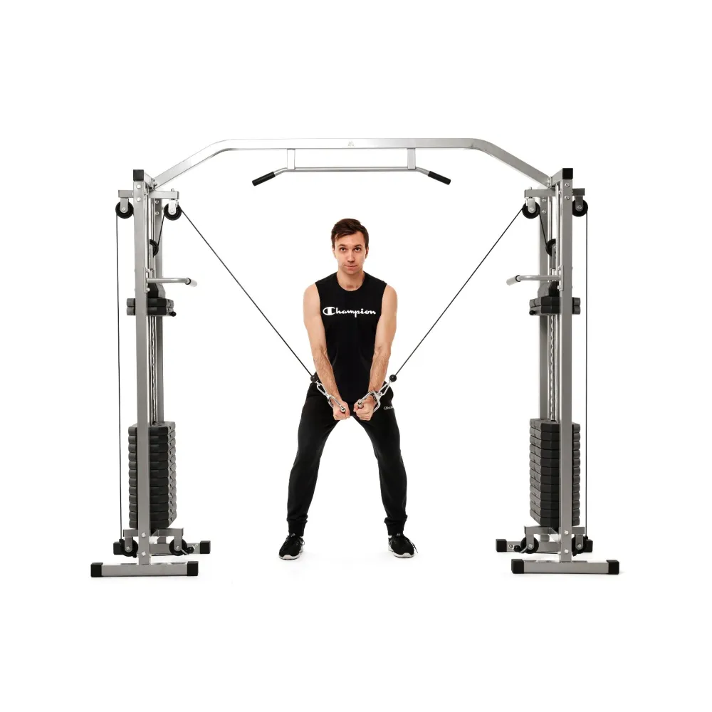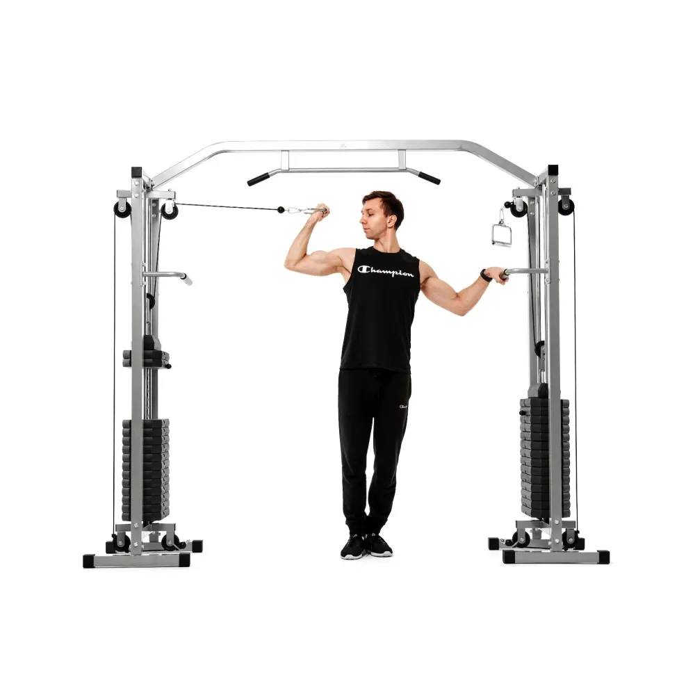 Кроссовер оснащён металлическими ручками с нескользящим хватом, которые регулируются по высоте в 21 положении. При выполнении упражнений с верхней тягой, нагружаются мышцы рук, груди и верхнего отдела спины.