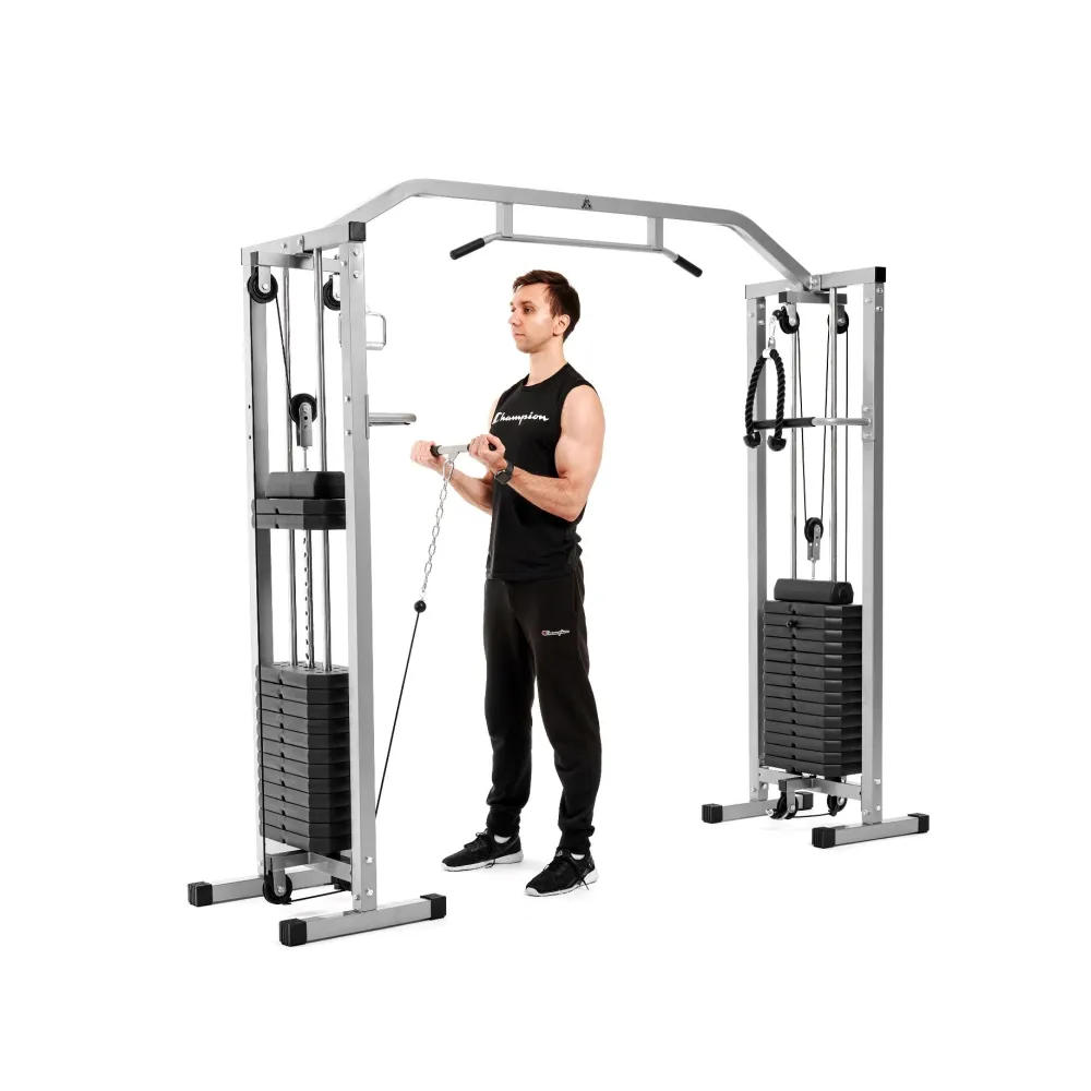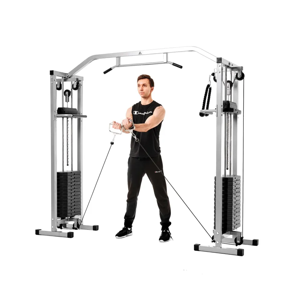 Тренажер со встроенными весами позволяет отлично прорабатывать мышцы верхней части тела благодаря множеству упражнений. Вращающиеся ролики верхних и нижних блоков предлагают оптимальное выполнение упражнений. Изготовлен из высококачественного стального профиля размером 50 х 50 мм.