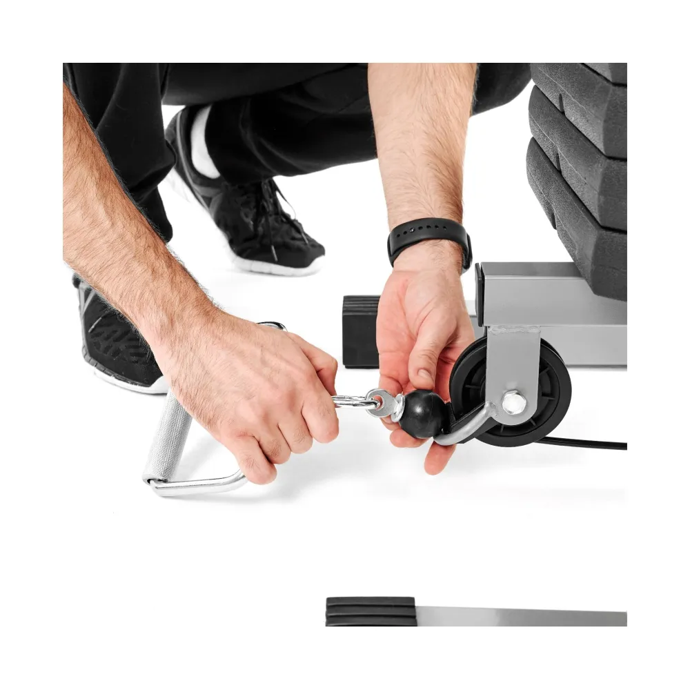 Ручка, регулируемая по высоте, входит в комплект кроссовера. С её помощью вы сможете более точечно прокачать мышцы бицепса или трицепса.