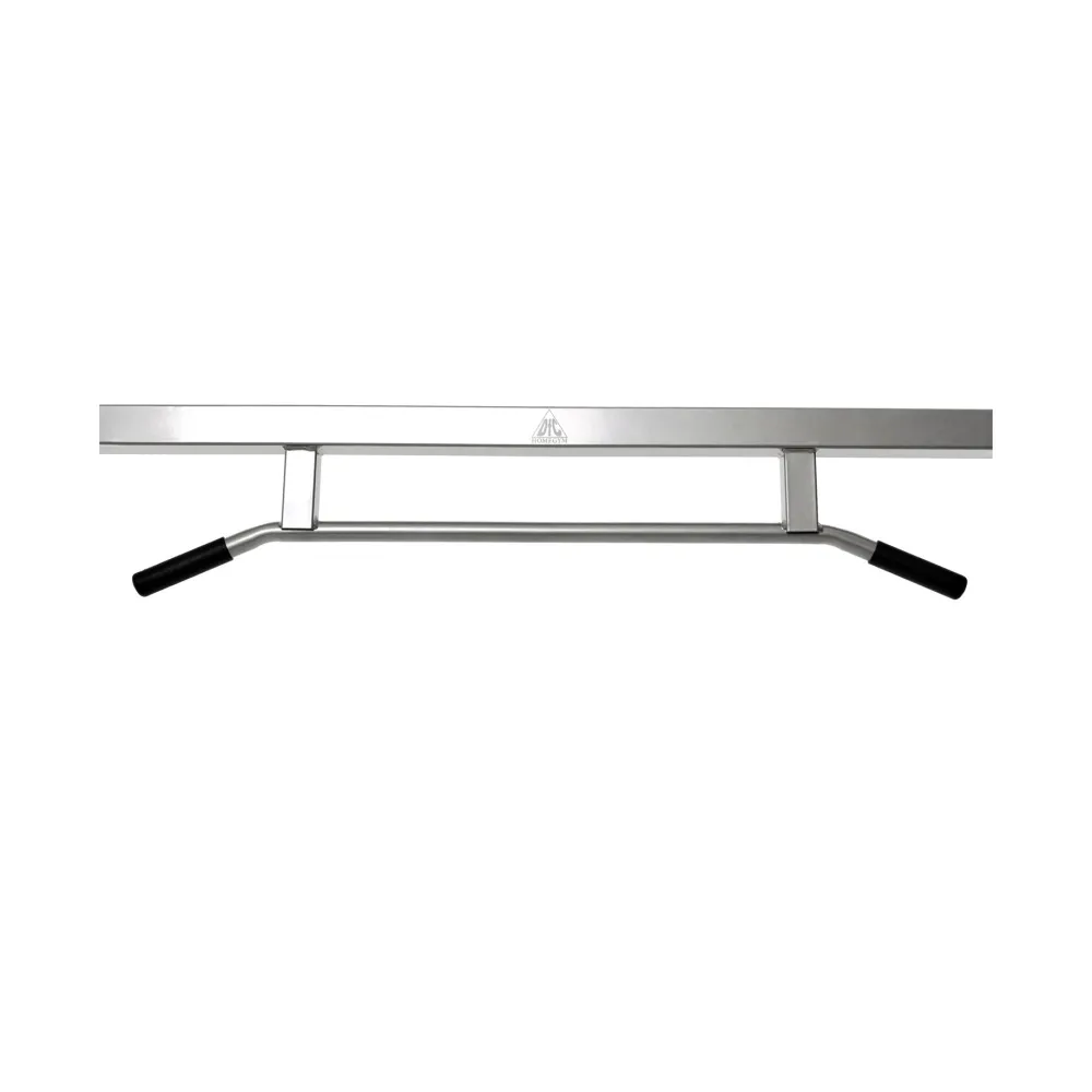 Турник с нескользящими ручками, входящий в комплектацию, выдерживает вес до 100 кг. Положение рук широким хватом хорошо укрепляет спину, руки и плечевой пояс.