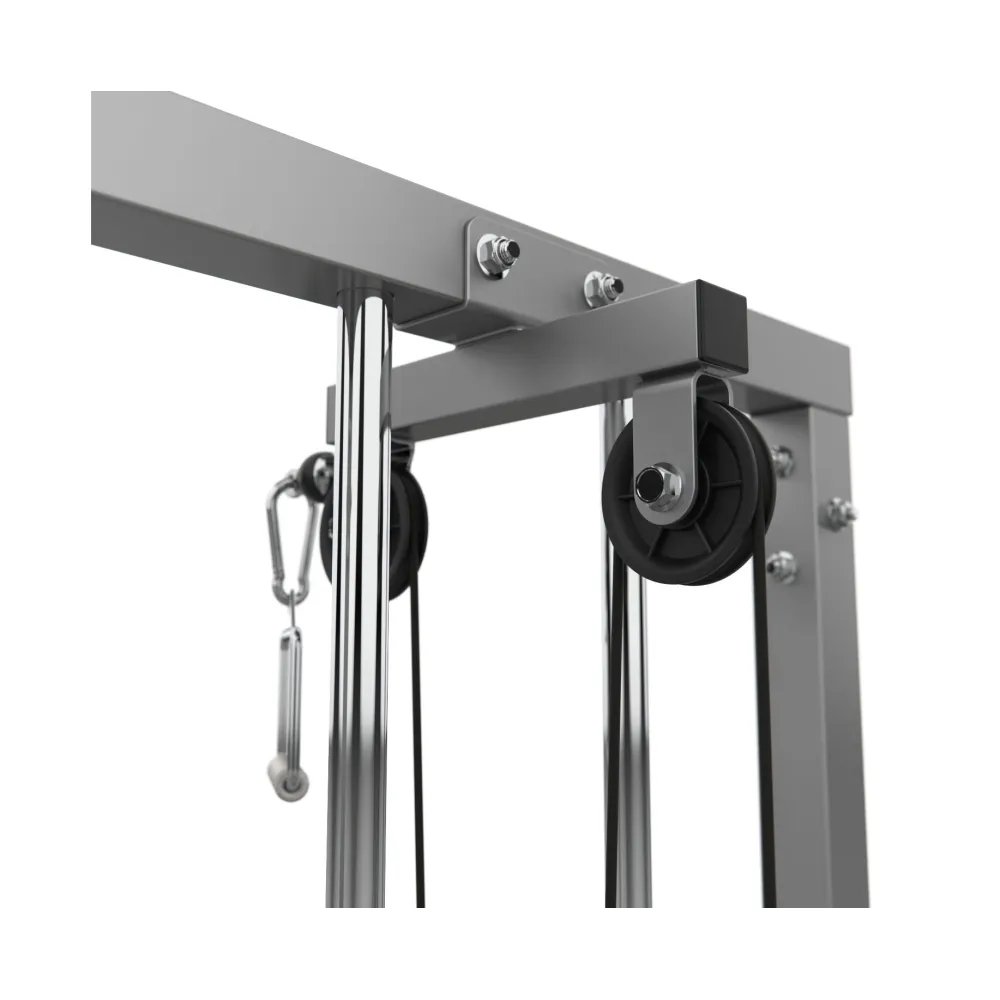 Позволяет отлично прорабатывать мышцы верхней части тела благодаря множеству упражнений. Вращающиеся ролики верхнего и нижнего блоков предлагают оптимальное выполнение упражнений.