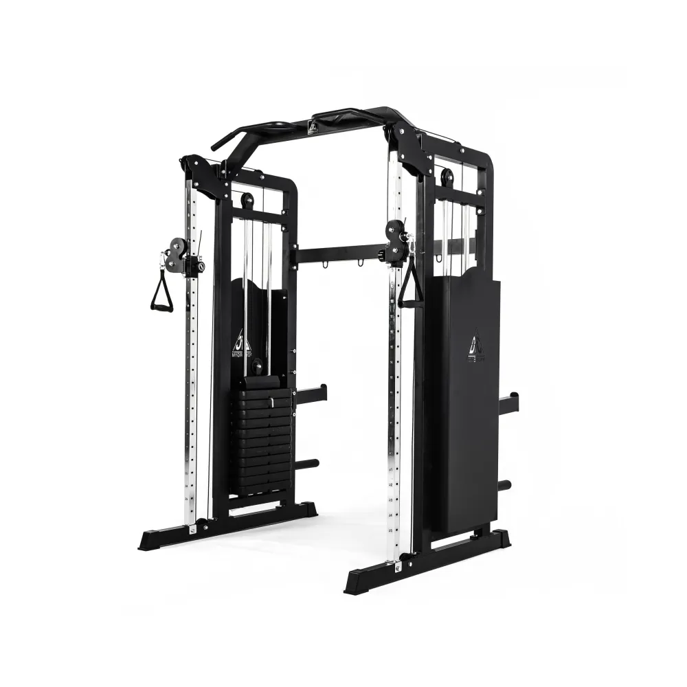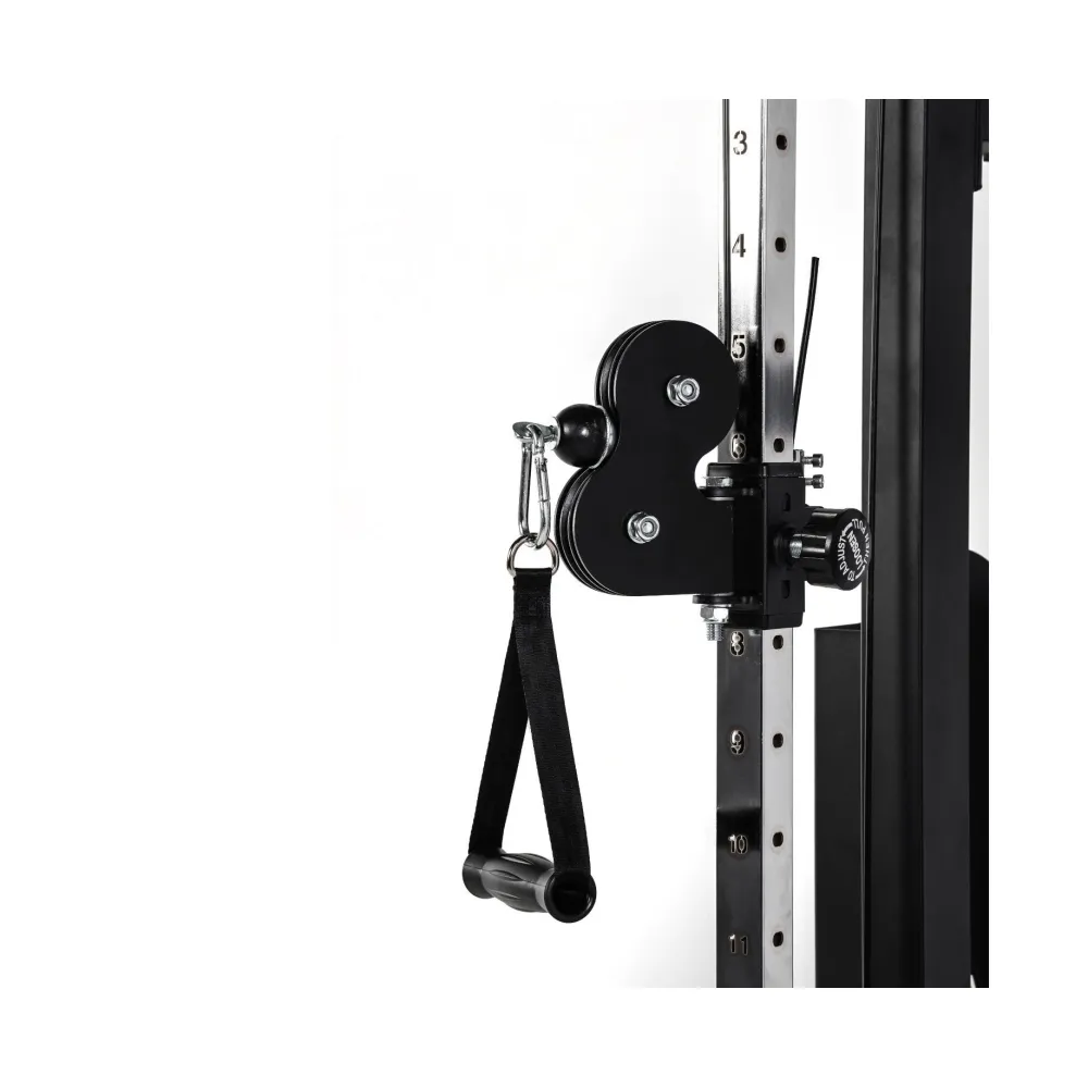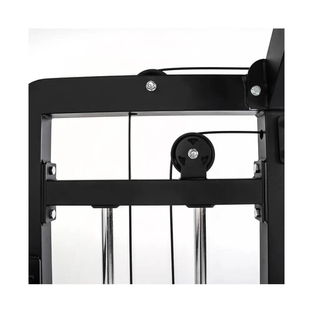 Кроссовер изготовлен из высококачественного стального профиля размером 50 х 50 и 50 х 75 мм. Толщина 1,5 мм. Диаметр тросов 4 мм. В качестве нагрузки используются 2 встроенных стека общим весом 163 кг: по 81,5 кг каждый.