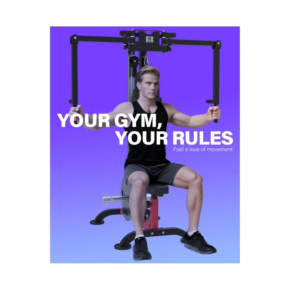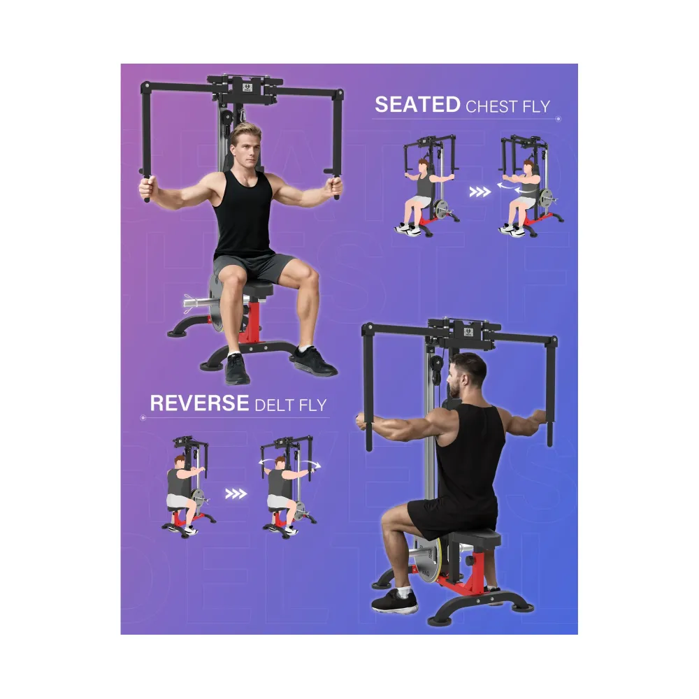 Тренажер сведение/разведение рук, верхняя тяга DFC D2042A — это надежное устройство для проведения полноценной силовой тренировки, охватывающее все группы мышц. Он оснащен скользящим противовесом и тросовыми системами для грудного блока и верхней тяги, что обеспечивает удобство в использовании. Конструкция включает прочные крепежные элементы, гарантирующие долговечность.