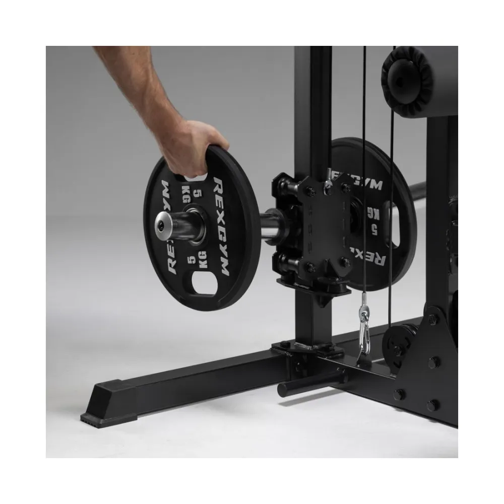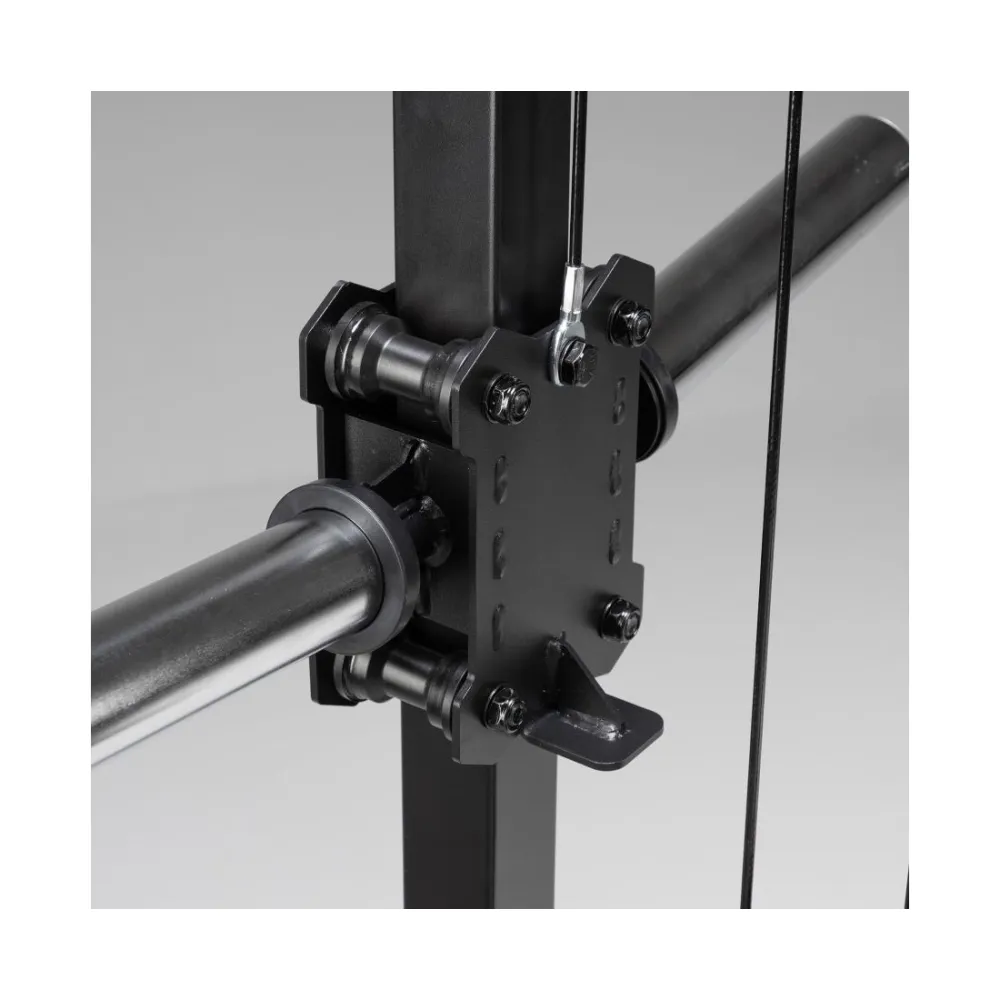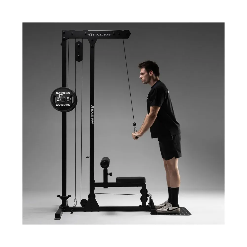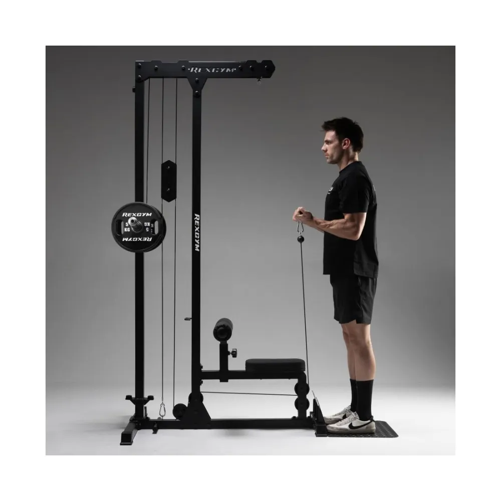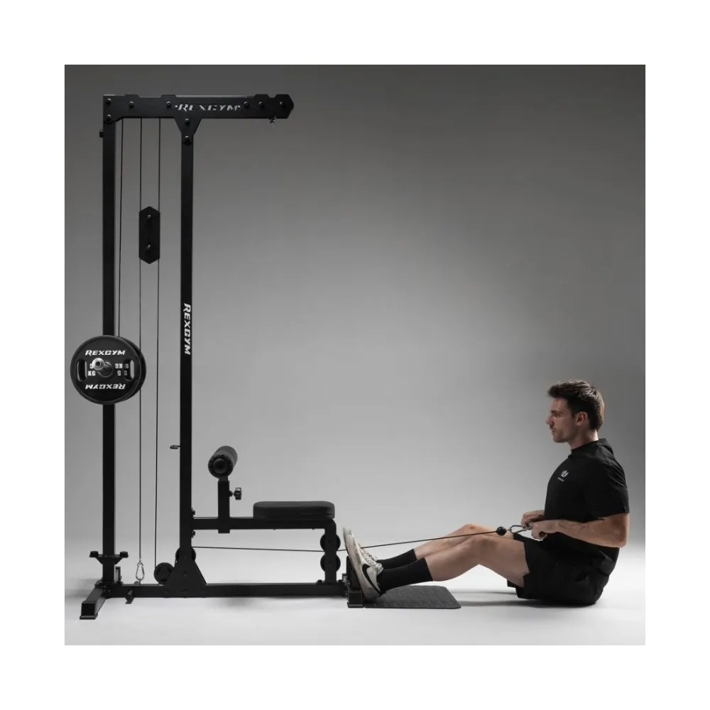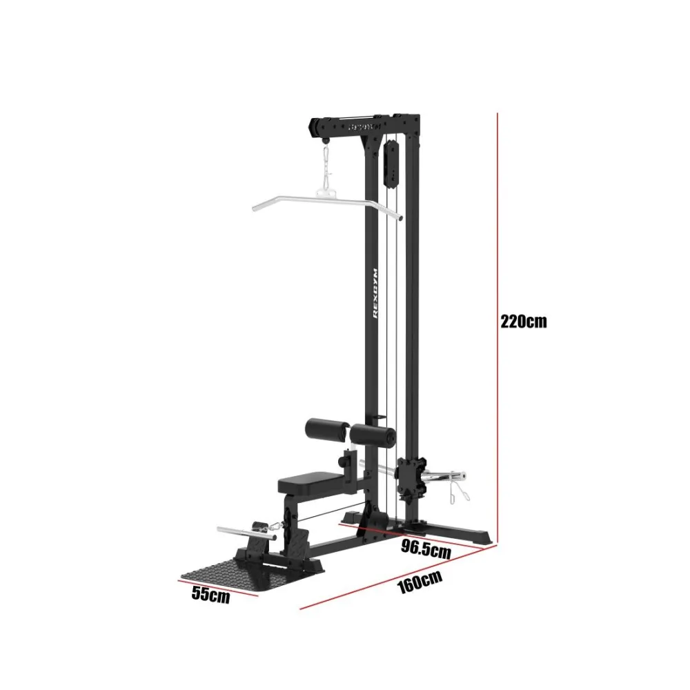 Тренажер рассчитан на максимальный вес пользователя до 130 кг. Он оснащён двумя загрузочными штифтами, на которые можно установить пластины общим весом до 100 кг. Компактный размер и вес тренажёра способствуют простоте установки в домашних условиях, а высококачественные материалы гарантируют его долговечность. Модель идеально подходит для регулярных тренировок и позволяет эффективно выполнять тягу как сверху, так и снизу.