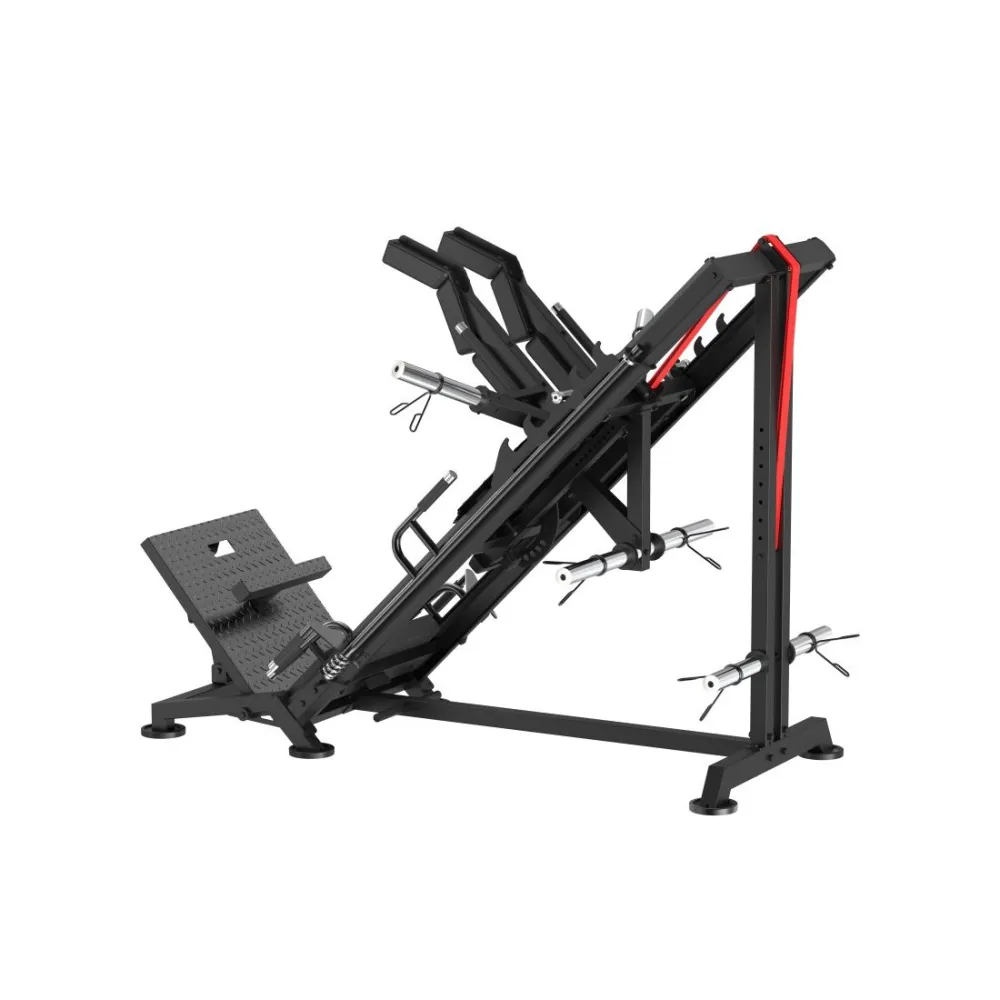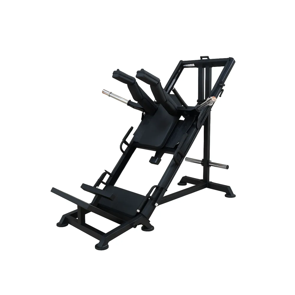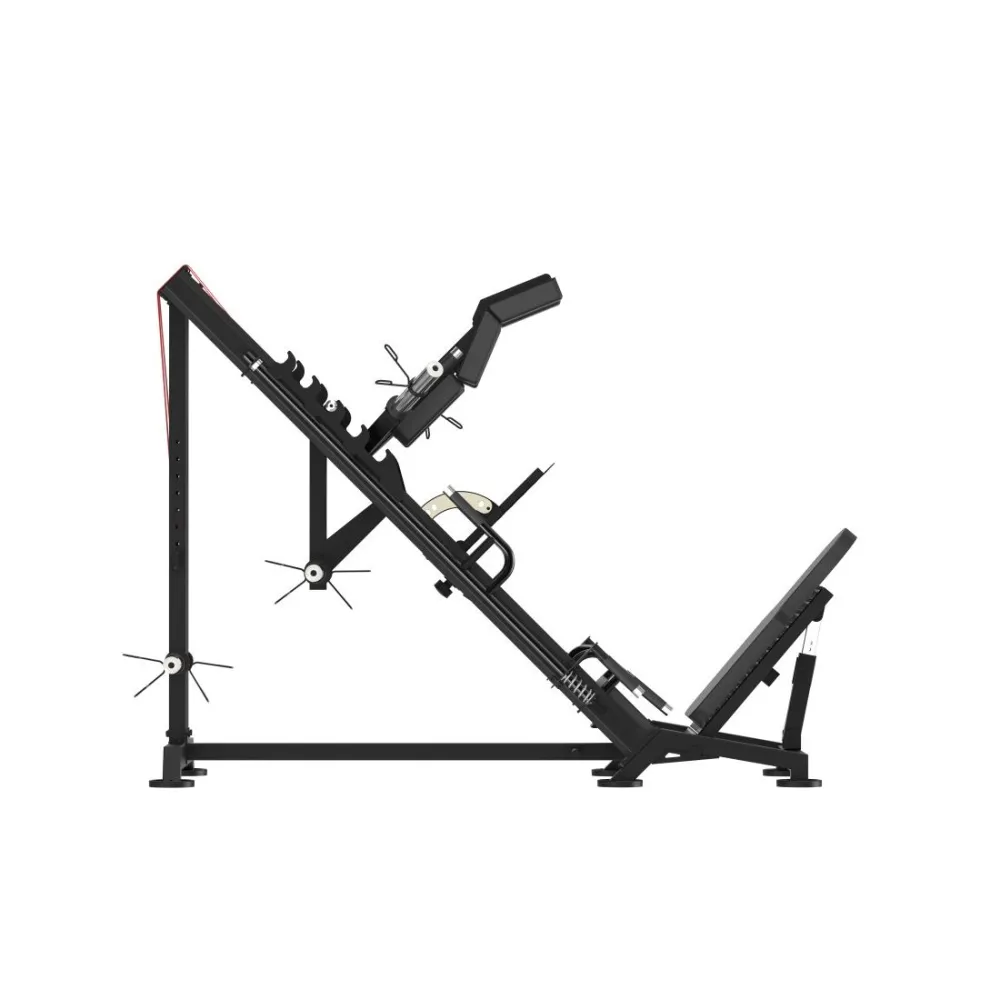 Максимальная нагрузка достигает 360 кг. Угол наклона платформы регулируется в диапазоне 130–150°, а спинка имеет 4 уровня регулировки. Платформа для ног изготовлена из рифлёного материала толщиной 3,2 мм, что предотвращает скольжение и обеспечивает безопасность при выполнении упражнений. Кроме того, конструкция позволяет выполнять отталкивания ногами снизу вверх, что увеличивает разнообразие тренировок.