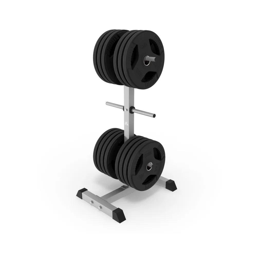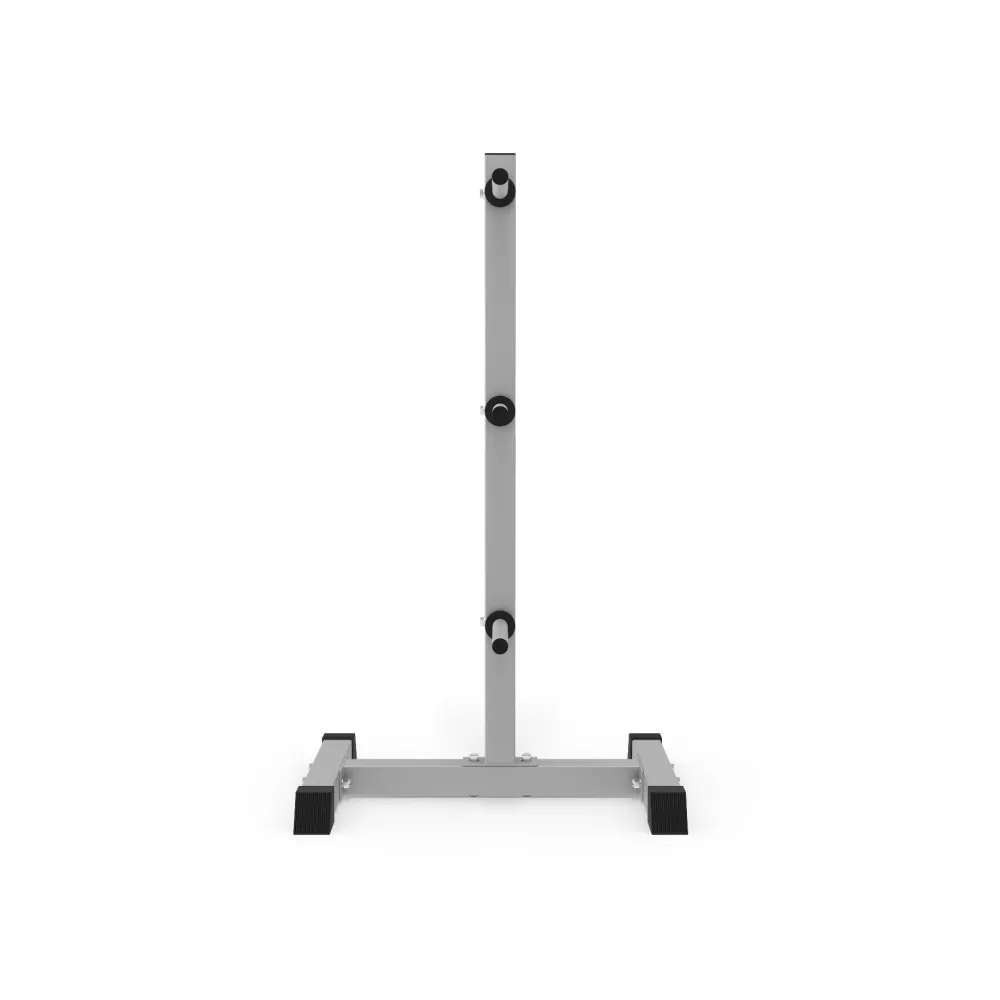 Стойка устанавливается непосредственно на пол и обладает устойчивостью, что предотвращает ее опрокидывание и шатание. Для повышения удобства и стабильности рекомендуется расположить легкие диски на верхней части стойки, а более тяжелые – внизу. Это позволит обеспечить легкий доступ к снарядам и оптимально распределить нагрузку.