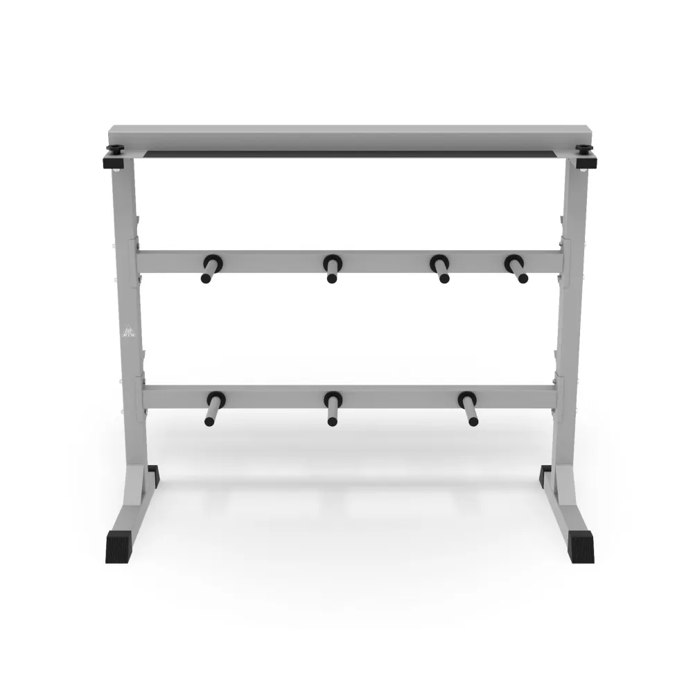 Стойка под гантели обладает высокой прочностью, выдерживая нагрузку до 200 кг, а держатели для дисков могут поддерживать до 100 кг. Кроме того, на этой стойке предусмотрены 7 посадочных мест для дисков. Стоимость этого продукта вполне оправдана, учитывая его универсальность, ведь на ней можно разместить 4 грифа длиной от 120 см, даже без дисков.